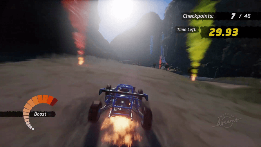 Not coincidentally, the mashup of Dreams' colorful simplicity and MotorStorm's raucous nature ends up manifesting as something with a striking similarity to On Rush — a game developed by the ex-MotorStorm team once they moved on to Codemasters. That, too, was an off-road racer that really deserved more attention than it got.