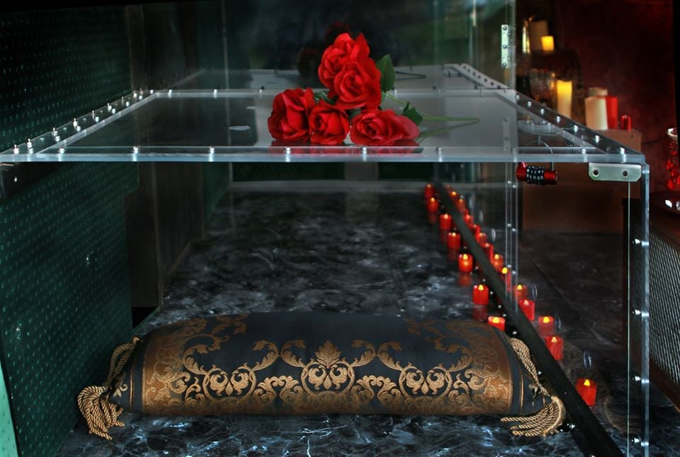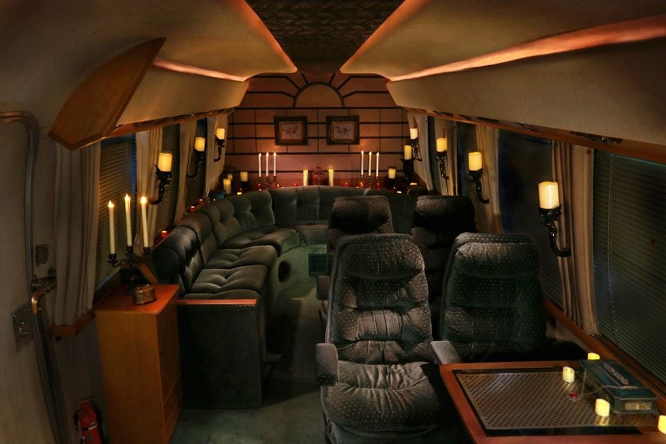 1982 Airstream Excella 280 Funeral Coach converted into an Escape Room called the Vampire's Lair.