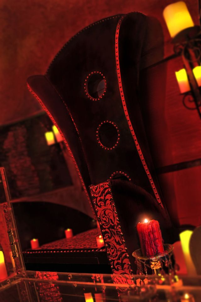 As it states in the ad, this machine doesn't actually run, so there's no word on what lies under the hood. Instead, the interest rests in the black seats, the glass-enclosed coffin, the throne, and the handcuffs.