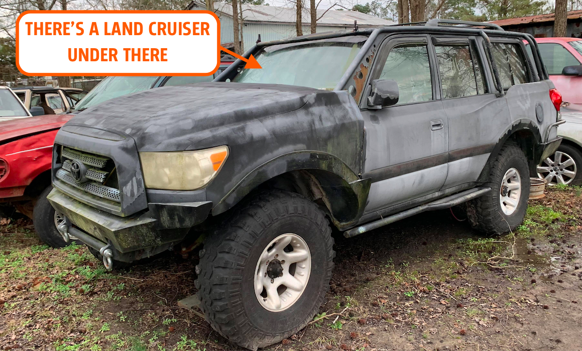 A man named Wyatt Pine posted pictures of his North Carolina junkyard find onto the Toyota 80 Series USA Facebook page, along with the humorous caption "I think I may have found a new 2022 land cruiser in North Carolina."