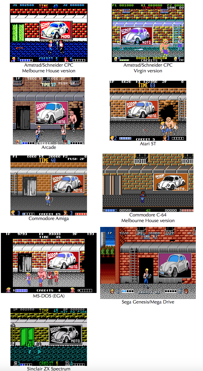 It is, however, a fantastic start, and includes screenshots from all kinds of games with Beetles somewhere in them, from arcade classics where they just appear in the background, like in the arcade classic Double Dragon, which is documented in nearly all its various ports and conversions: