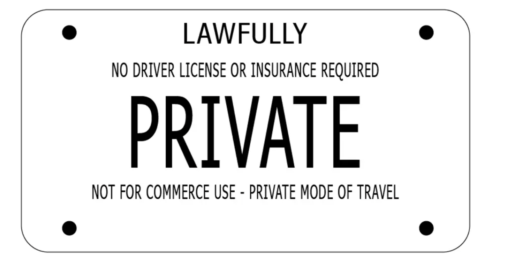 One of the most basic tactics for SCs is quibbling over not just laws but the meaning of the words in those laws. SCs claim since they are not engaging in interstate commerce, they do not require a license or registration. This is why you'll often spot an SC's vehicle with a phony but official looking license plate with the language "Not for Hire" or "Private Conveyance." Because if they aren't engaging in commerce, they are not driving, but traveling. From A Legal Response to the Sovereign Citizen Movement: