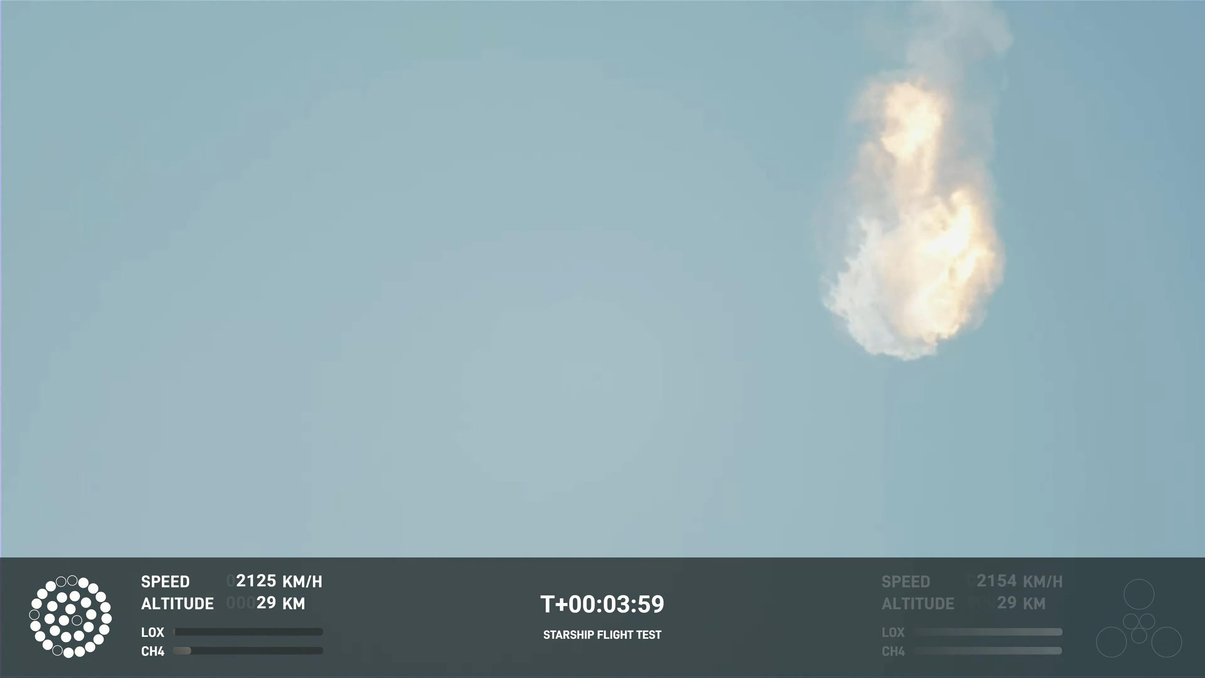 Then, three minutes and 59 seconds into the flight, Starship detonated into a ball of flame. Commentators on NASA Spaceflight's simultaneous stream postulated that the rocket may have been intentionally scrubbed, using an "automated flight termination system," but SpaceX commentators described the situation as "rapid unscheduled disassembly." It's not clear if that quip meant that the automated termination system did engage, or if something worse happened within the Starship system.