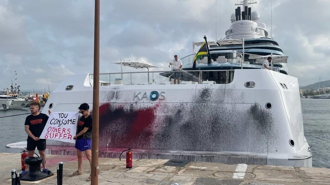 CNN reports that Futuro Vegetal, a Spanish environmental protest group, vandalized a superyacht on Sunday. In addition to covering the boat in red and black paint, they also held up a sign that read, "YOU CONSUME — OTHERS SUFFER" in photos they shared on Twitter. They also reportedly shared a video where they said, "The richest 1% of the world population pollutes more than the poorest 50%. They are condemning us to a future of pain, misery and desolation. They are destroying our planet, compromising the habitability of the land and everything, to lead a standard of living that goes beyond the limits of reason."