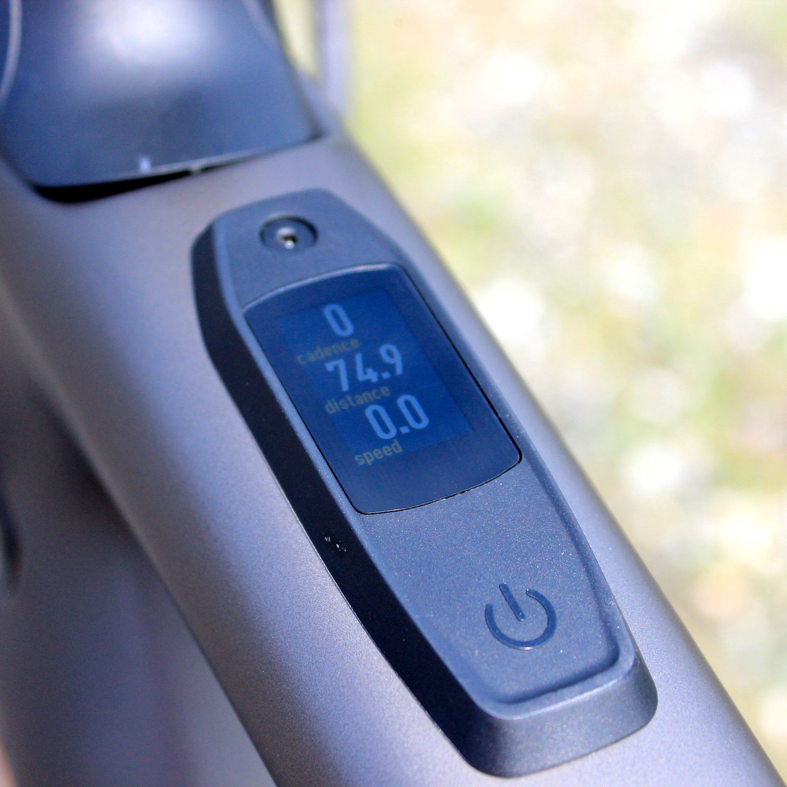 You cycle through those three modes via built-in buttons on the bike. When you change mode, the LCD screen in the frame shows your assistance level, with the text on the screen changing color depending on which mode you choose.