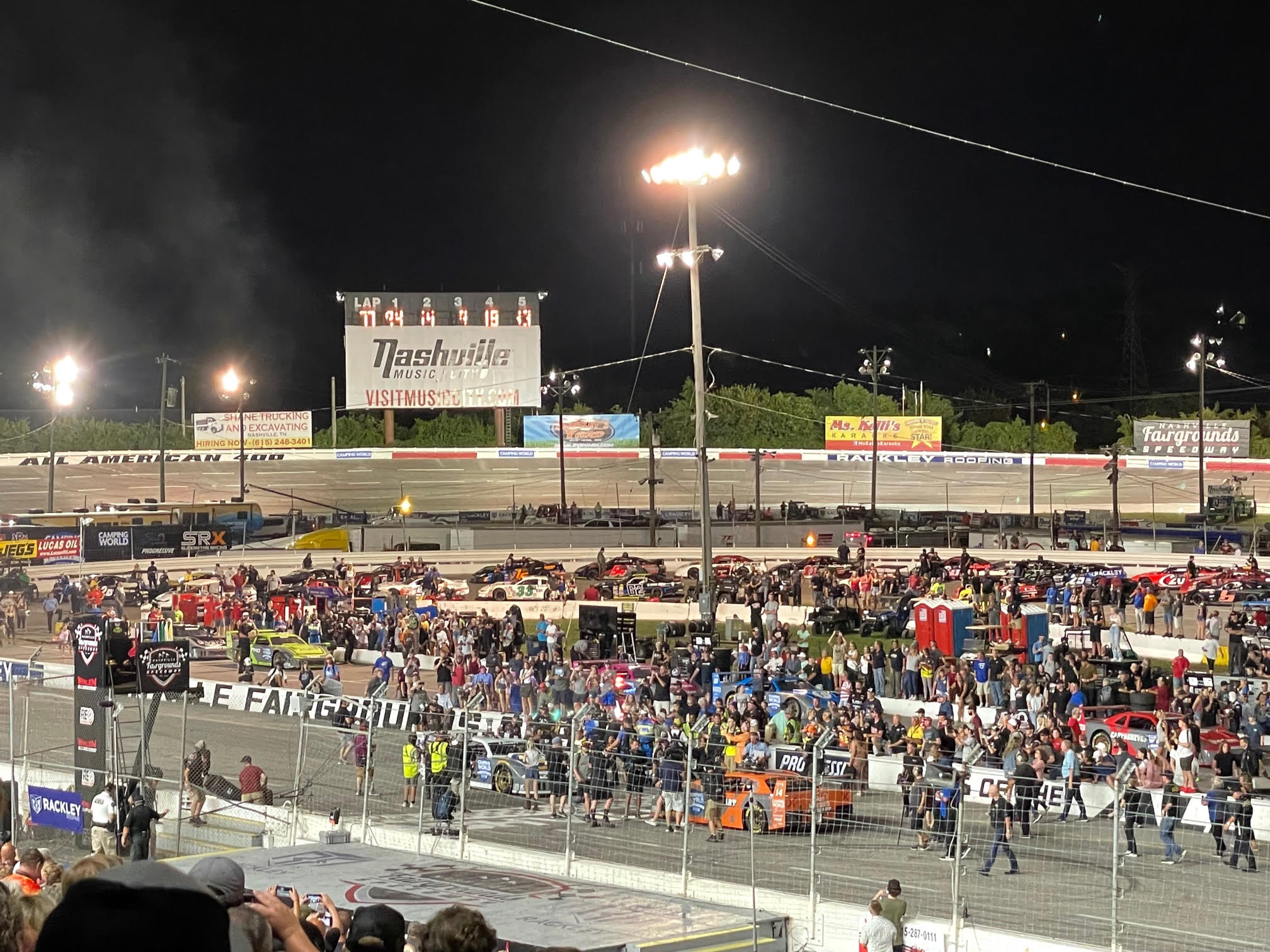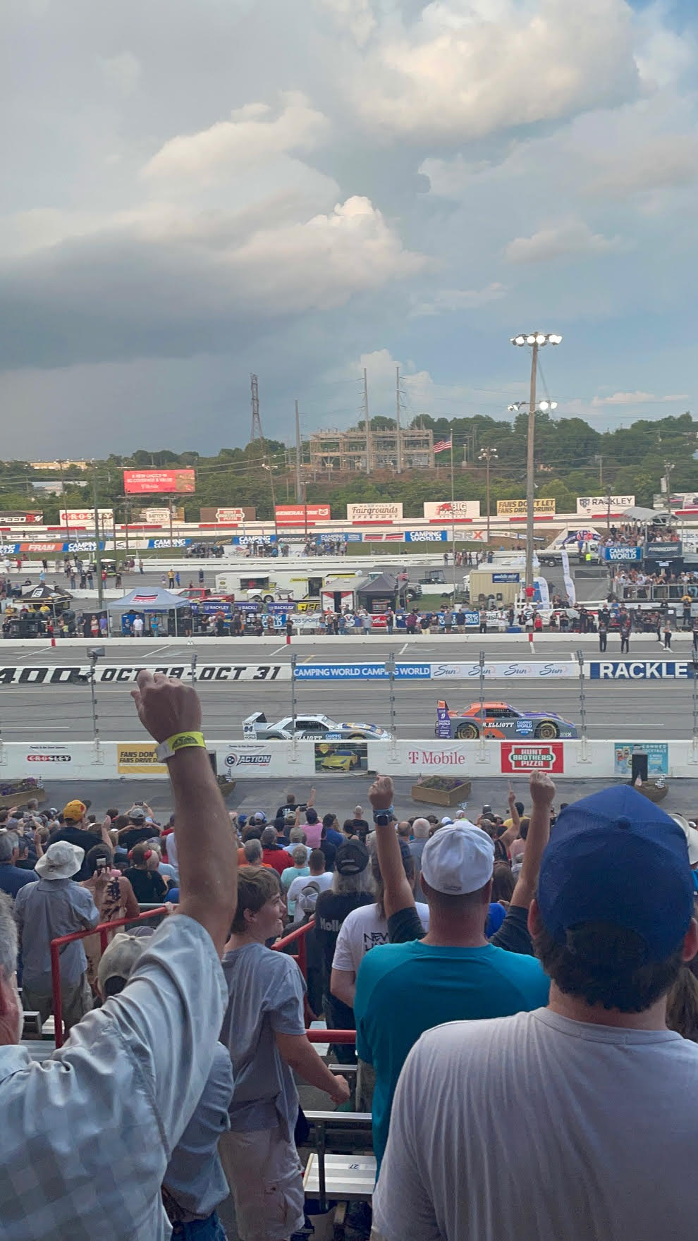 The only problem with the seating was it was general admission for this race and a sold out crowd so we had to wander around for a while until we found 2 empty seats. The crowd itself was very high energy and it seemed like mostly Nashville area locals. Everyone seemed really happy and excited to see the first sold out race there in decades and optimistic about what it could mean for future races. Definitely a sea of Chase Elliott shirts everywhere. The younger couple in front of us were strictly Indy Car fans and the older guys behind us talked to us about Bill Elliott and Dick Trickle.