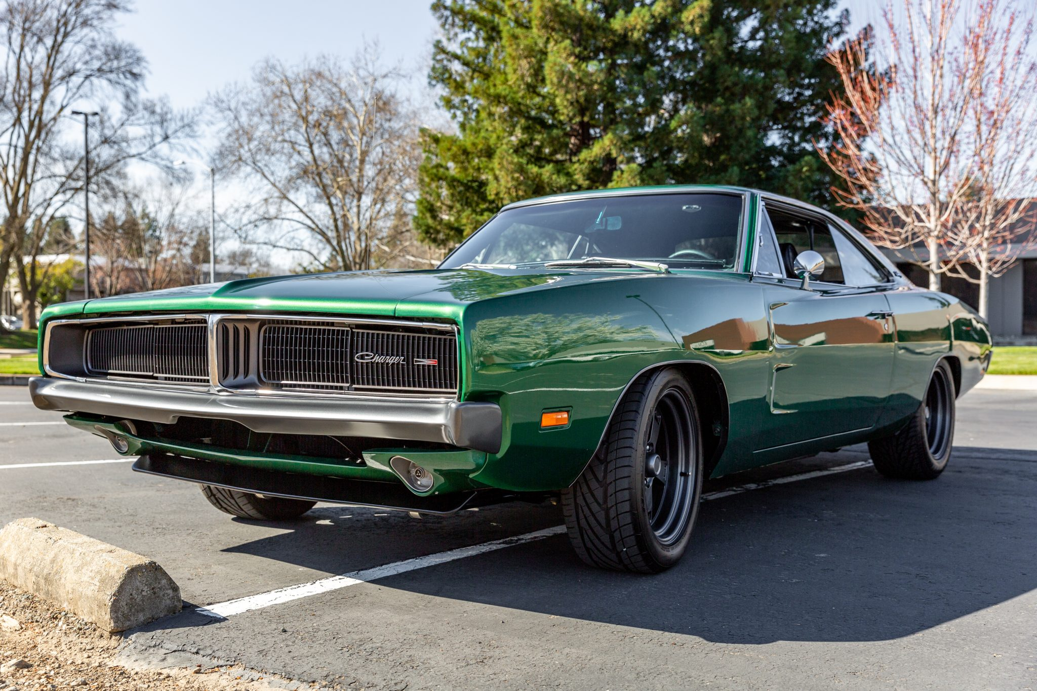 Aesthetically, this Charger is perfect. That green color, draped around those classic body lines, looks absolutely incredible. Sure, the wheels are a bit too modern, but they're the right color and the design is probably just to make room for those Wilwood brakes. They get a pass.