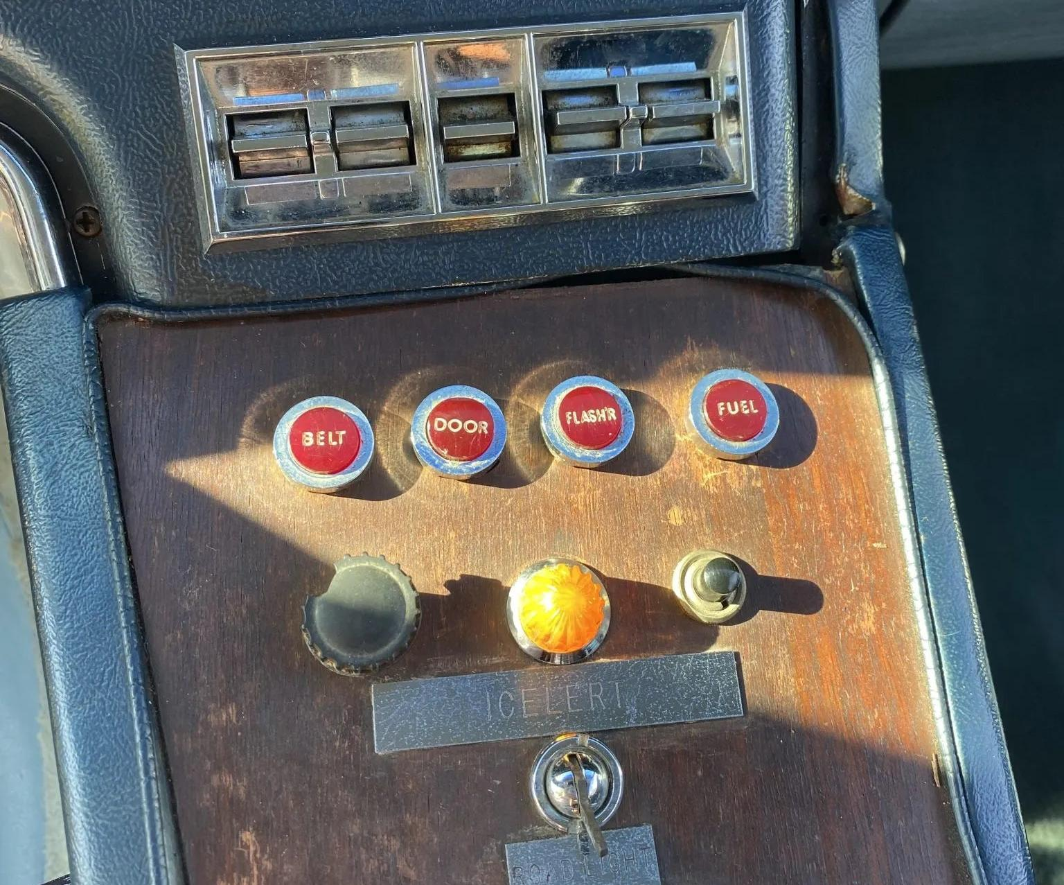 The dashboard of the Apollo houses controls for all the new electronic wizardry provided in this special edition car, with a row of big red buttons that look like a Bond car's accessory switches. The rear seats cocoon occupants in plush blue leather seats, and the Apollo's reading lamps look like a hilarious afterthought, but are also somehow mid-century modern chic. The car phone is integrated with all the subtlety of a bat to the face, but showcasing such advanced tech must have been cool back then. The 9-inch TV screen looks like it belongs in Nixon's Presidential Limousine, but it actually suits the Apollo's weirdly prioritized back seats quite well, too.