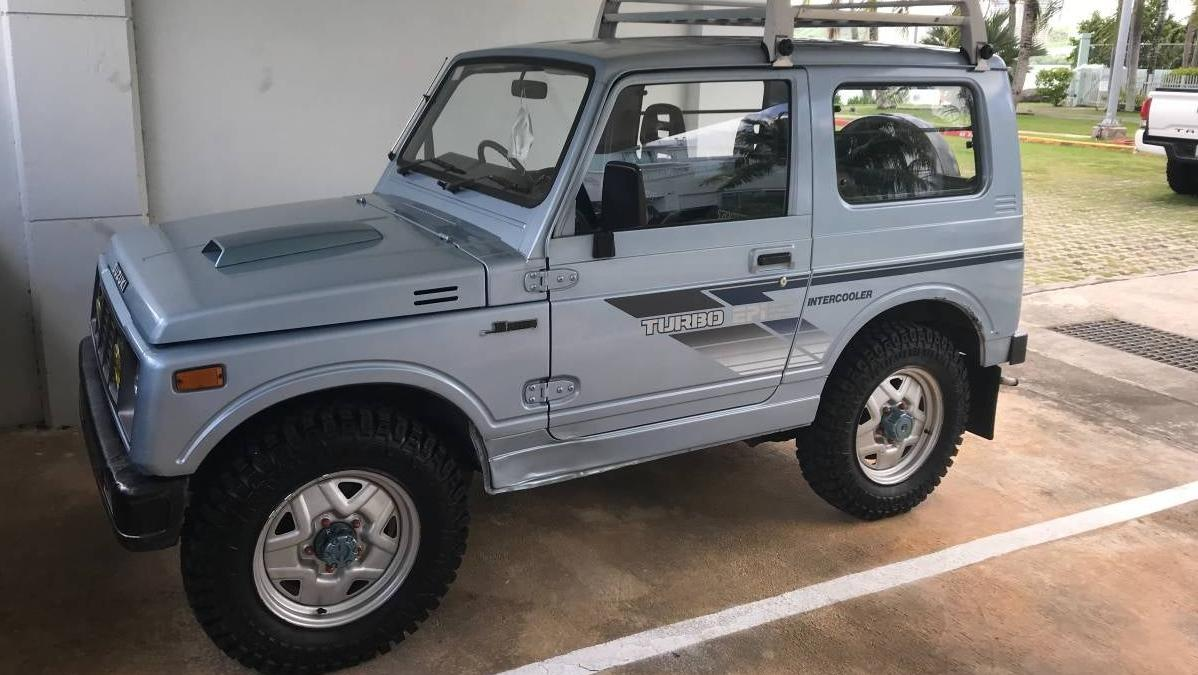 The Jimny rocks. The only thing that makes a Jimny better is a hard top, and if you add a turbo to that, well, you've got a winner. This Jimny comes with a three-cylinder turbocharged engine with low miles, a five-speed manual transmission and, best of all, yellow-tinted fog lights (or french fogs.)