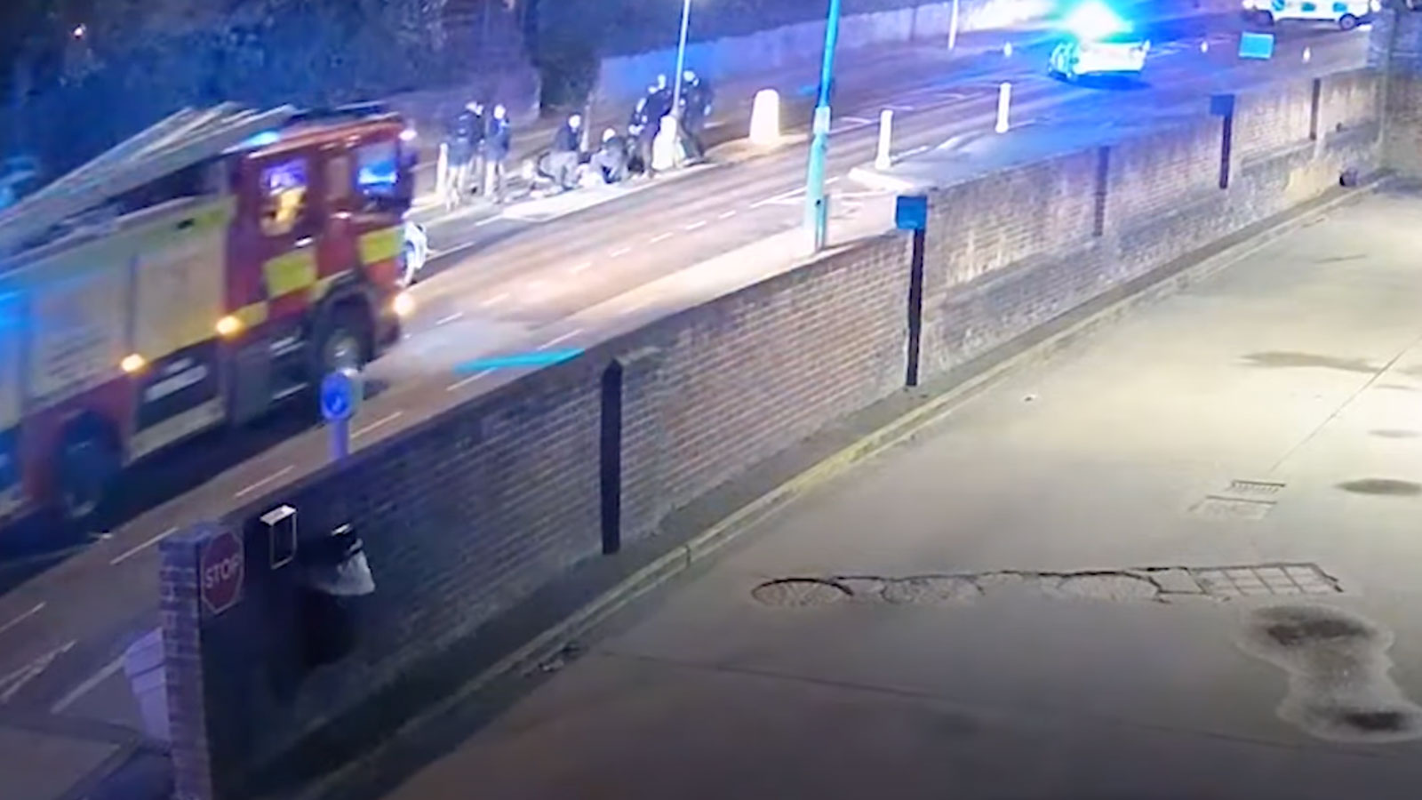 The teenager brought out the emergency services when he staged an elaborate crash in Mansfield, Nottinghamshire. Now, the local police force has released the CCTV footage of the incident that caused the offender to confess.