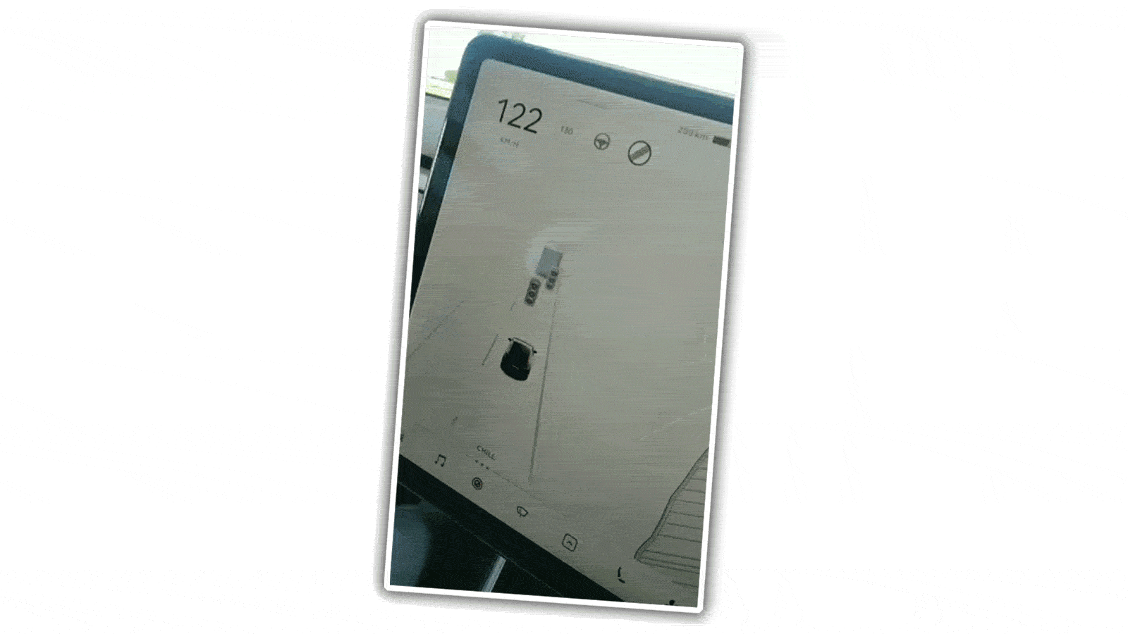 In this example, which was first posted to Reddit's r/teslamotors subreddit, we see a video of a Tesla Model 3's large dashboard screen, which is showing a visualization of what it's perceiving in the world around it as it operates under the semi-automated Autopilot system.