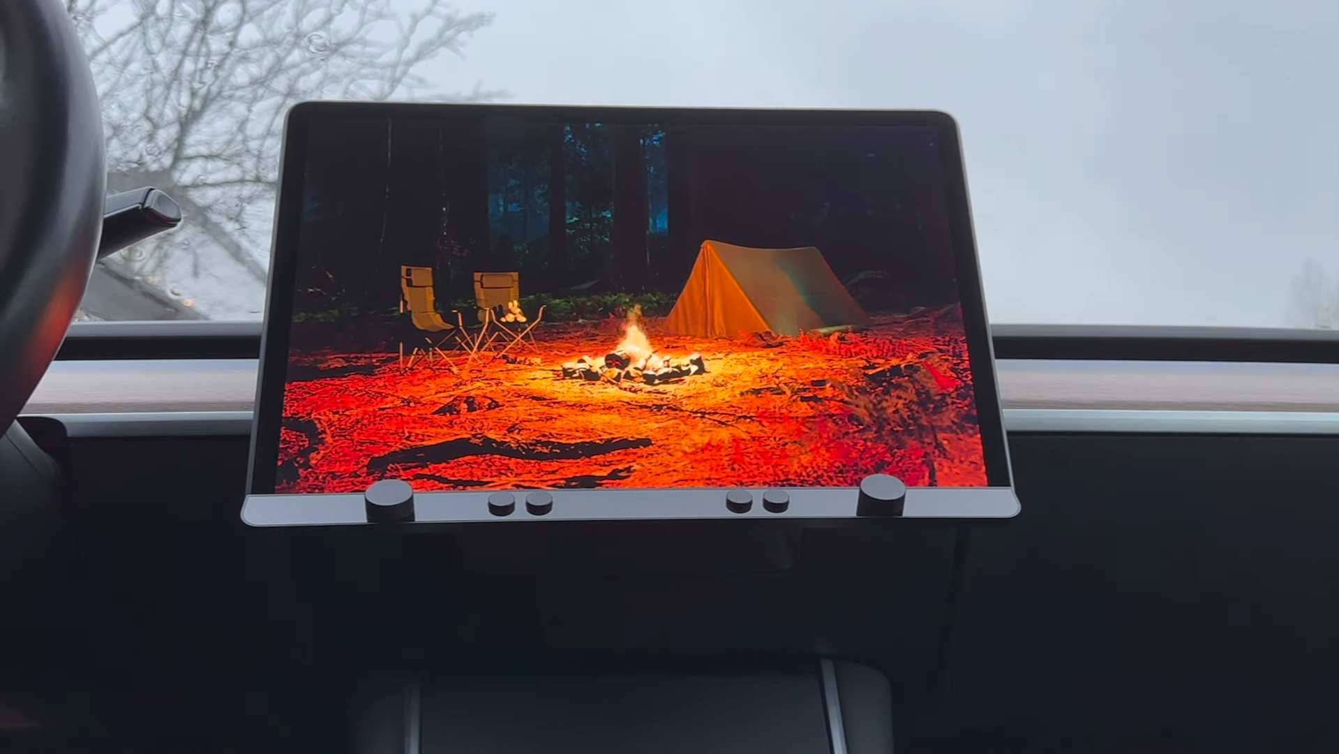 The Ctrl-Bar has two knobs, or dials, as well as four programmable buttons that can be assigned to actions that can turn on the heated seats, toggle defrost mode and dog mode among many others. You could open trunks, frunks, maybe even gloveboxes with the buttons. Finally!