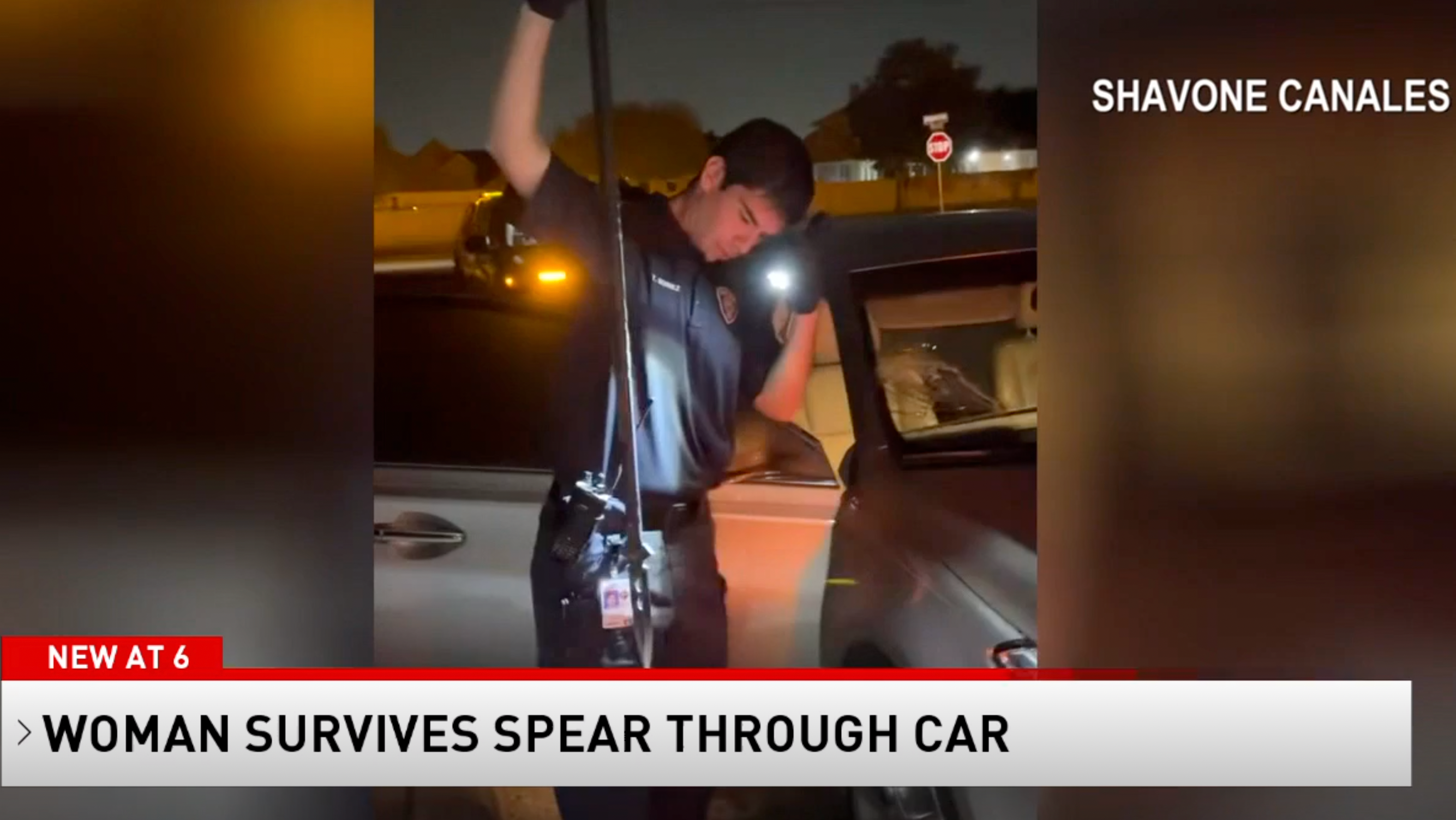 Texas Woman Nearly Impaled By Spear That Flew Through Her Windshield