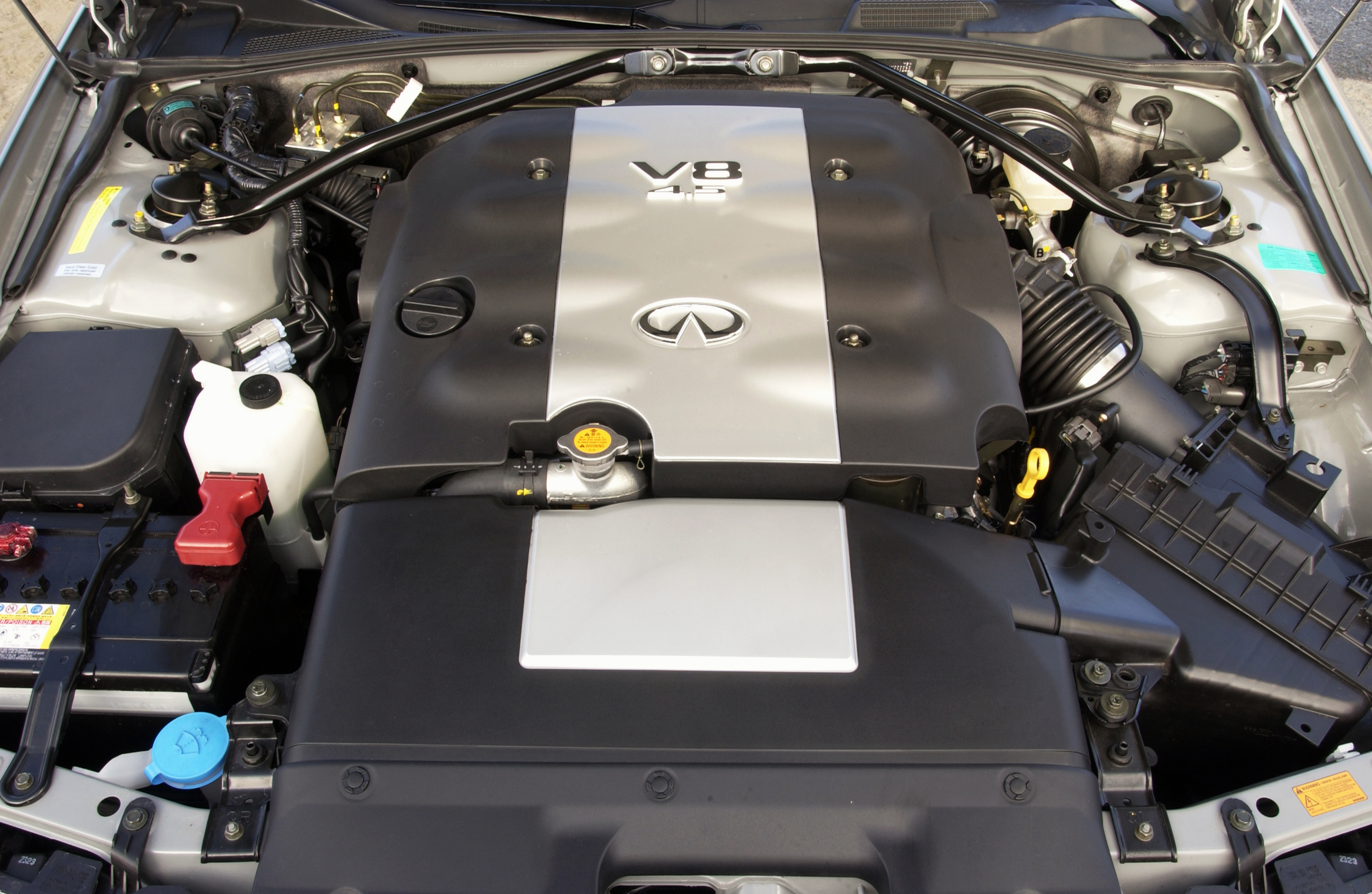 The second-gen M was a front-engine, rear-wheel drive machine with a big V8 up front. That alone is a great recipe for a muscle car, but Infiniti had even nailed down the small, sophisticated details. Apparently, Nissan asked Porsche for help in designing the car M45/Gloria/Cedric, though I couldn't find exactly how much of Porsche's engineering brilliance went into the car. Nissan and Porsche gave the U.S. a slightly different car than the model Japan received. The rear suspension, for instance, was similar in design to the one used on the 350Z. The M45's engine is what really made it a muscle car.