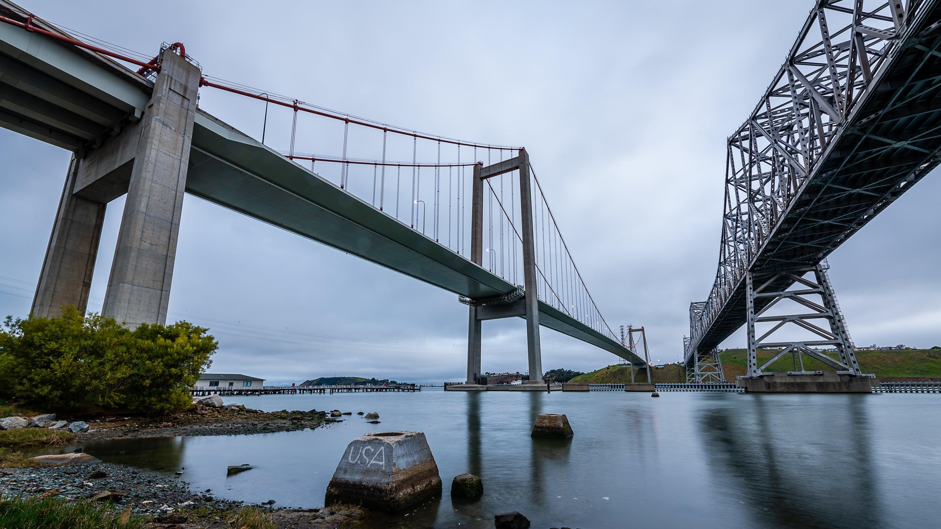 With a 2,390-foot main, the Alfred Zampa Memorial Bridge is the 6th-longest suspension bridge in the United States. The bridge crosses the Carquinez Strait at the northeastern end of San Francisco Bay. It also runs parallel to an older cantilever bridge. Both are collectively referred to and operated as the Carquinez Bridge.