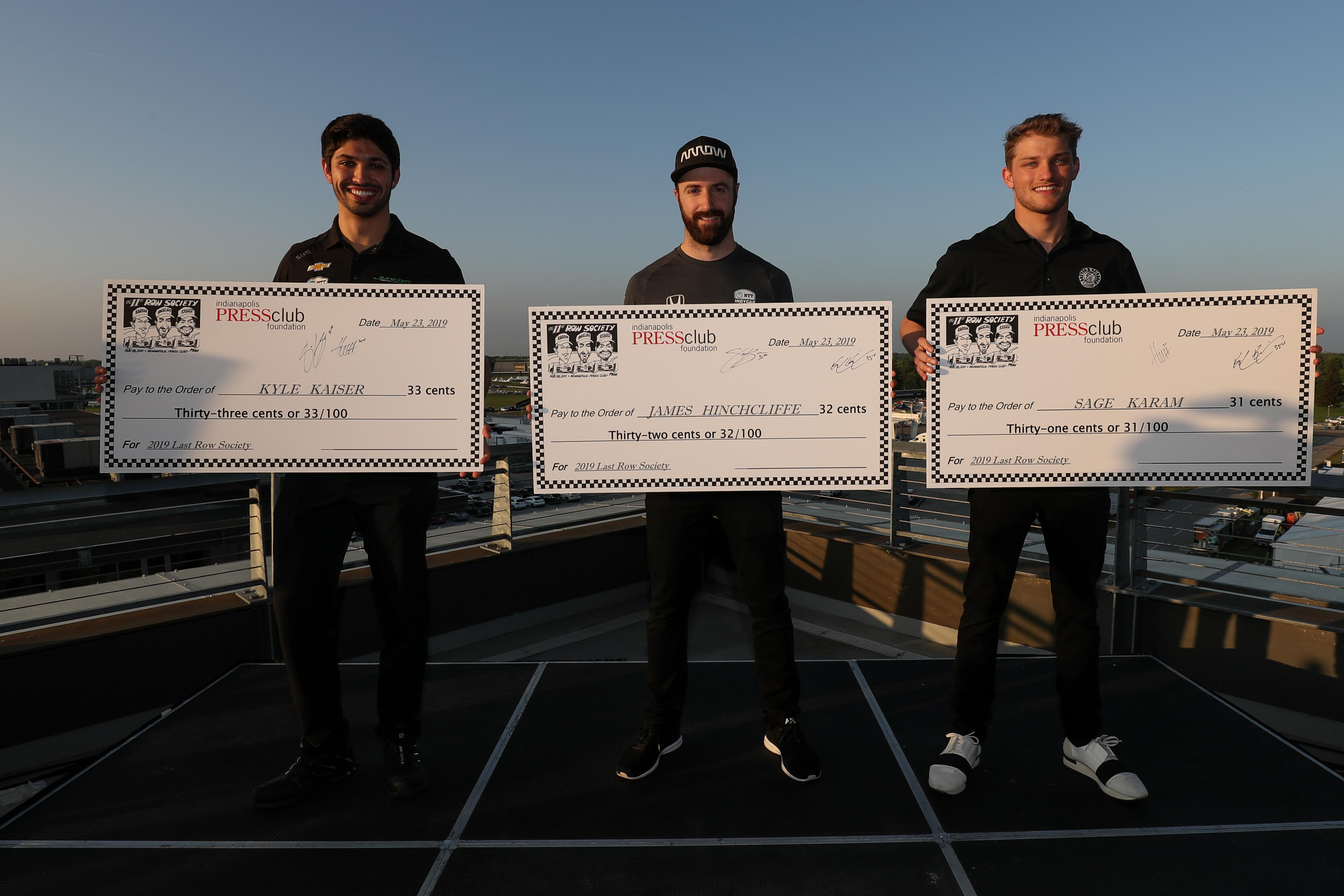 Each year, the Indianapolis Press Club Association hosts an event called the Last Row Party. Part cocktail party and part roast, it's a charitable event that anyone can buy tickets for. The drivers that make up the last row of the grid turn up for interviews and some jokes, and they're awarded 31, 32, or 33 cents, depending on their grid position, and some other goodies like jackets.
