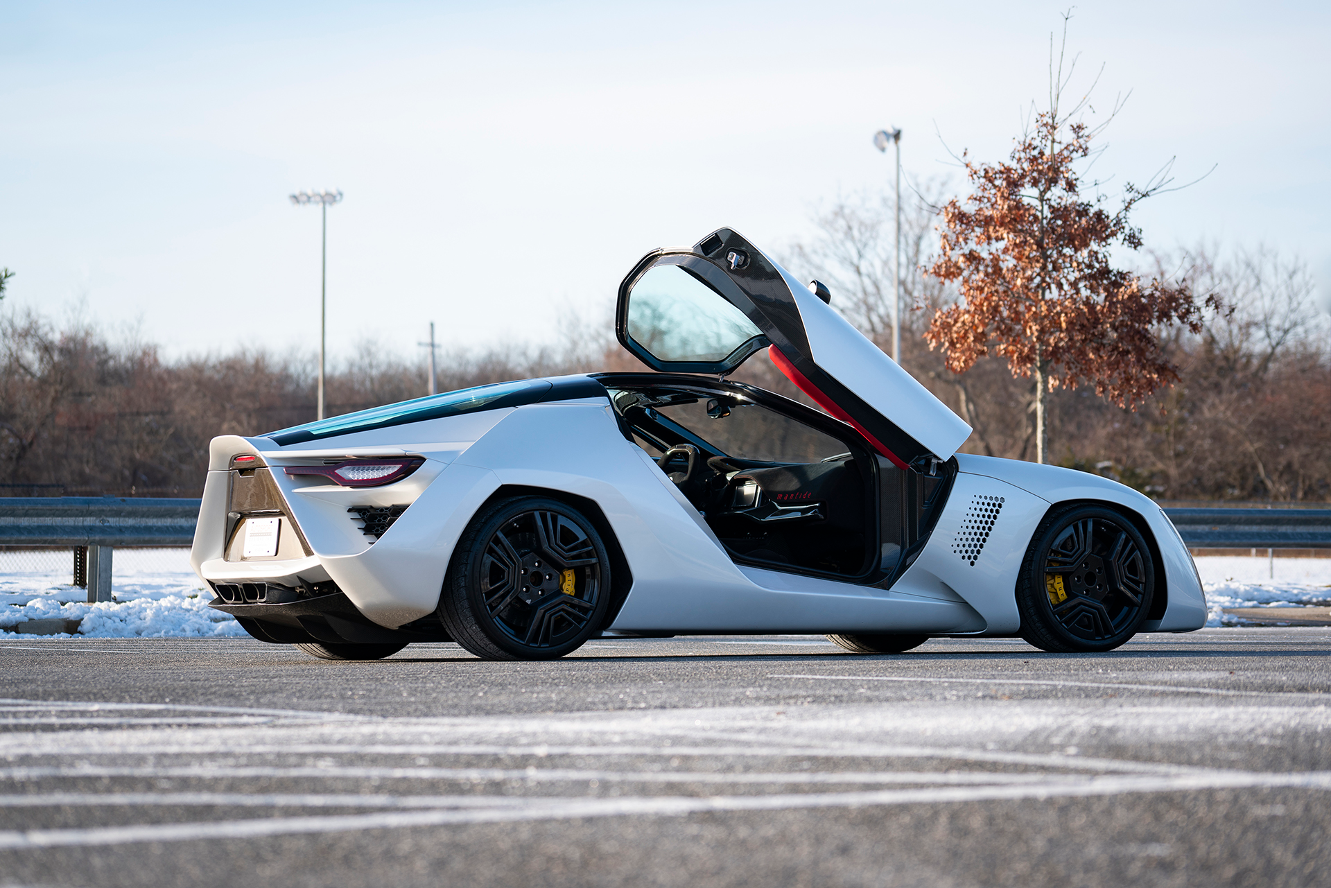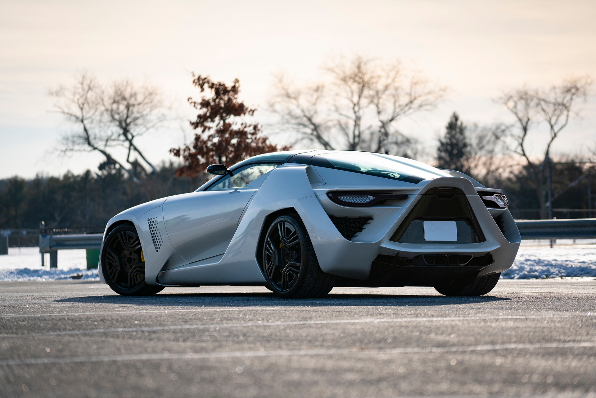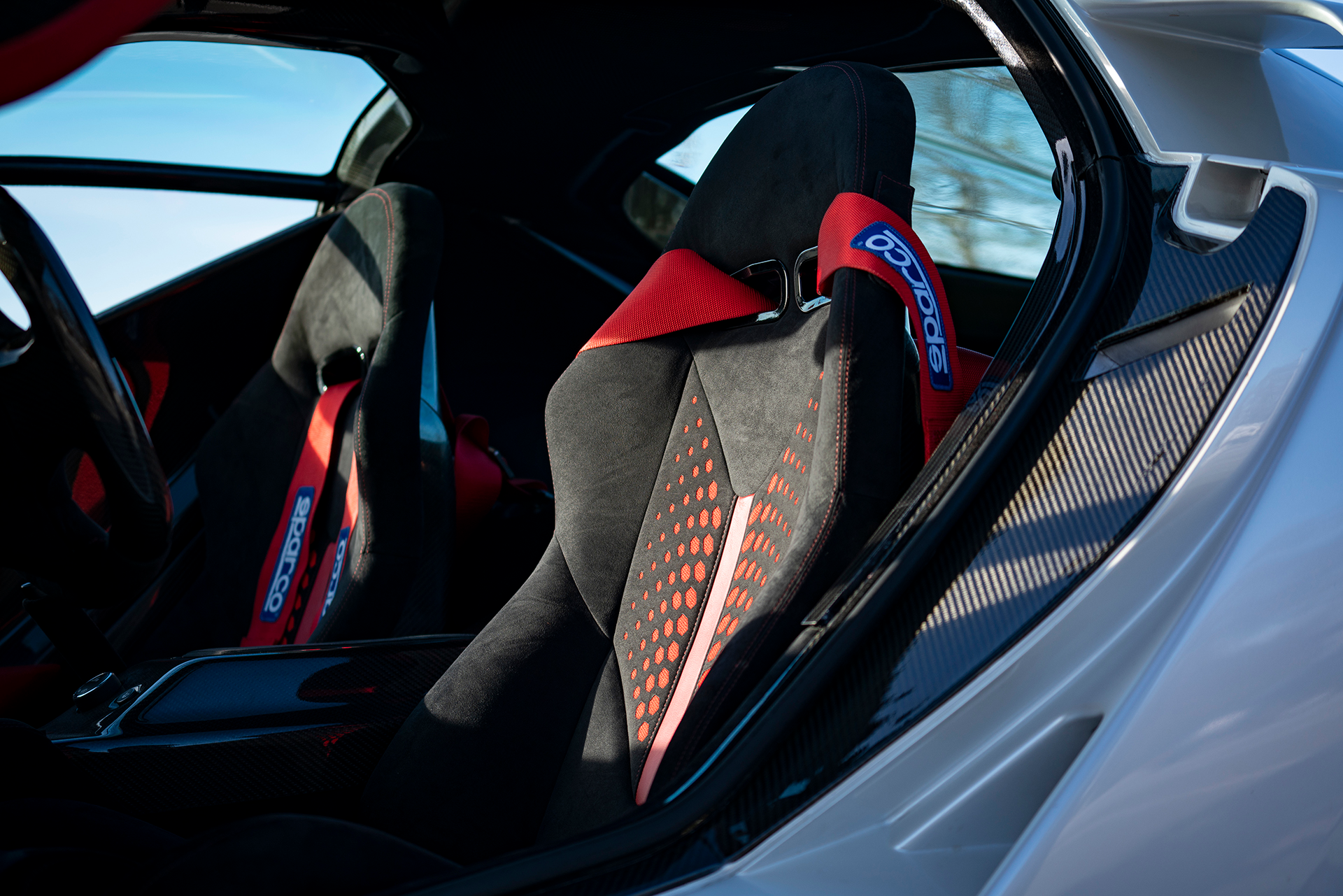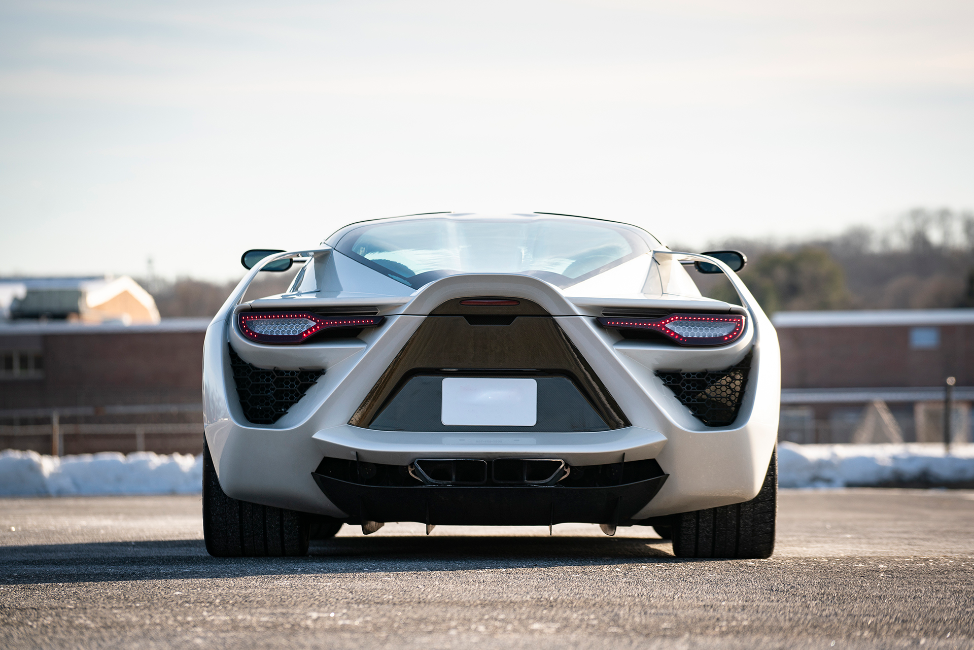 This is the only example made, the same one which ran up the hill at Goodwood before it was loaded into air freight and sent to its new owner at Monterey Car Week. As soon as the new owner received the car he had it stripped down for a full re-paint in its current Bianco Fuji. It was then showed at The Quail at Car Week in 2010 where it won first place in the Supercar Class.