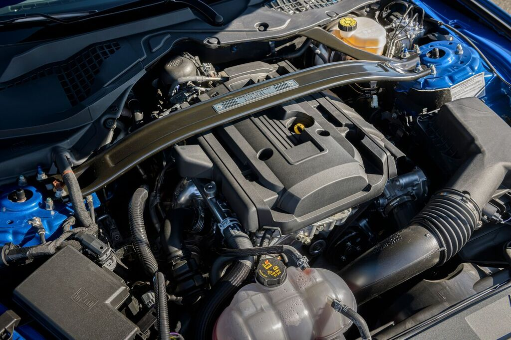 The HPP EcoBoost Mustang started out as a Focus RS engine swap skunkworks project that eventually made it to production. So, no, it doesn't have the four-banger from the regular EcoBoost Mustang. Rather, it uses the high revving motor that's built in Valencia, Spain.