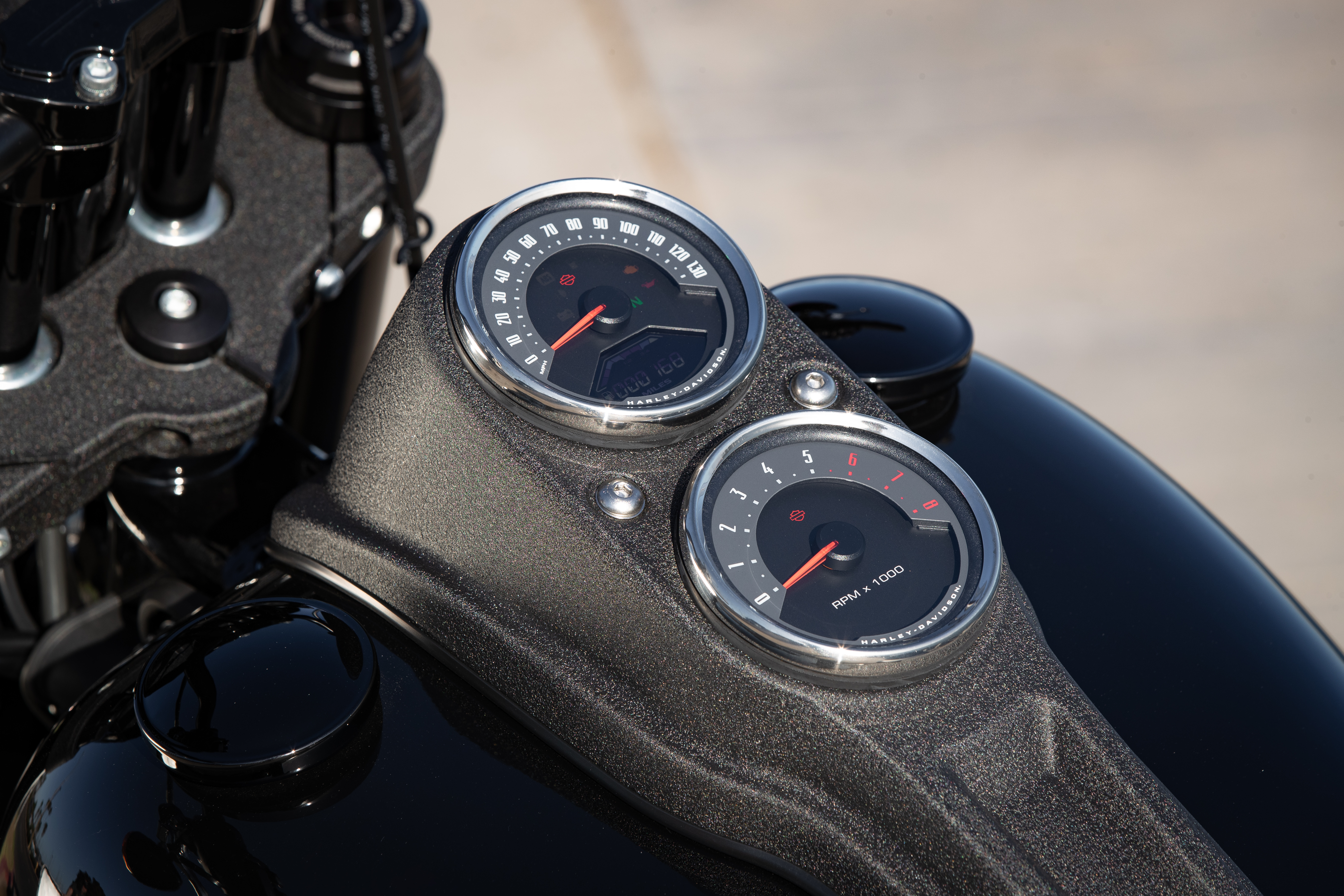 One aspect of the bike's throwback-for-the-sake-of-throwback that I cannot abide is the tank-mounted gauge cluster. This vintage cue pulls the speedo, tach, and ancillary idiot lights far below the rider's line of sight. In my case, wearing a helmet with a chin bar blocked sight of the gauges entirely. I was forced to crane my neck downward significantly to get a good look at them, which is not a great thing in a car, and an even less great thing on a motorcycle.