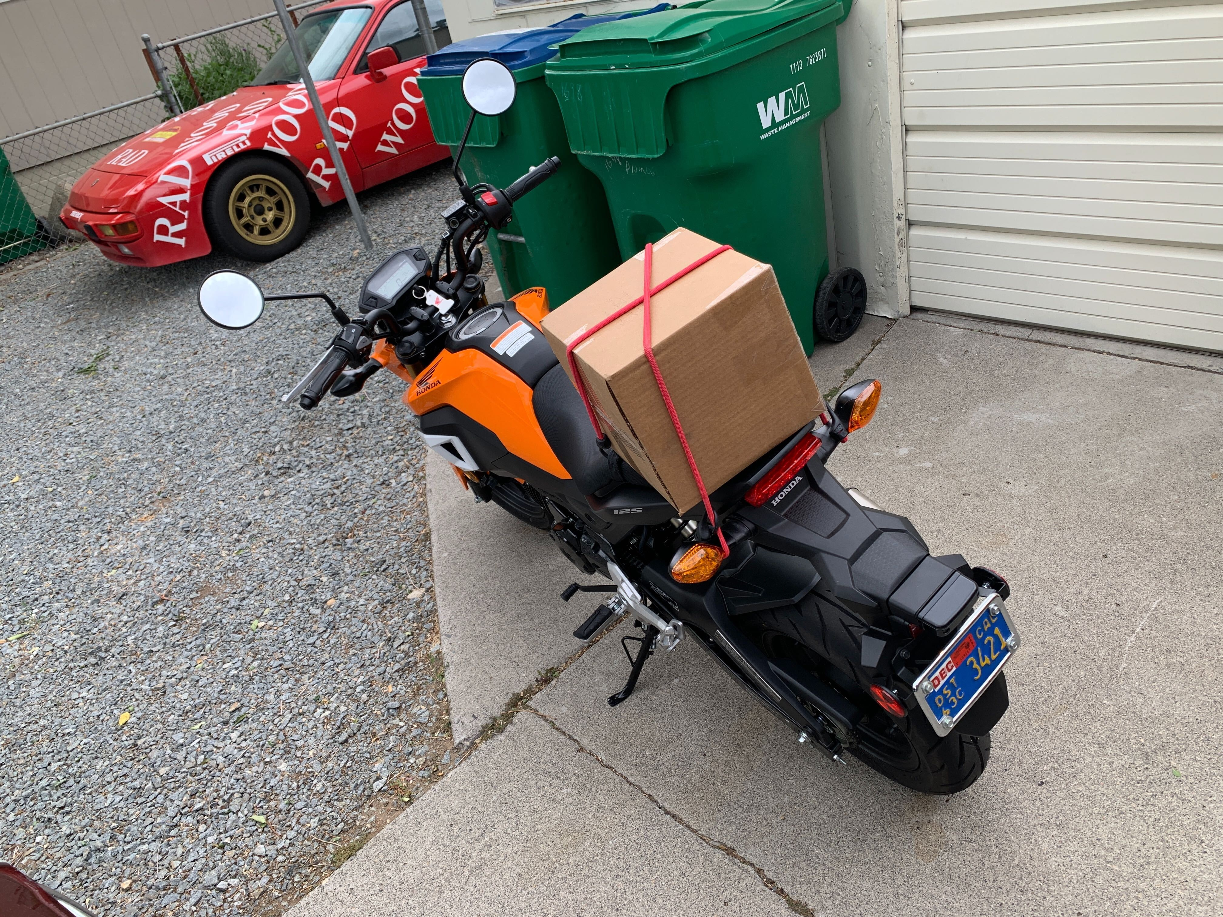 More often than not, when hopping down to the grocery store a couple of blocks over, I'd take the Grom instead of getting in the car. Why would you want to take a 4,000 pound luxury wagon to get a 12 pack of Diet Coke when you could toss on a backpack and straddle this little mule? Even when I needed to bring a package to the post office, I loved pushing the Grom into service for something it was definitely not designed to do.