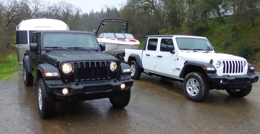 I only got to tow a 5,000 pound boat with that white Jeep Gladiator Sport S you see above for about 10 minutes, so I can't offer any sort of comprehensive towing assessment.