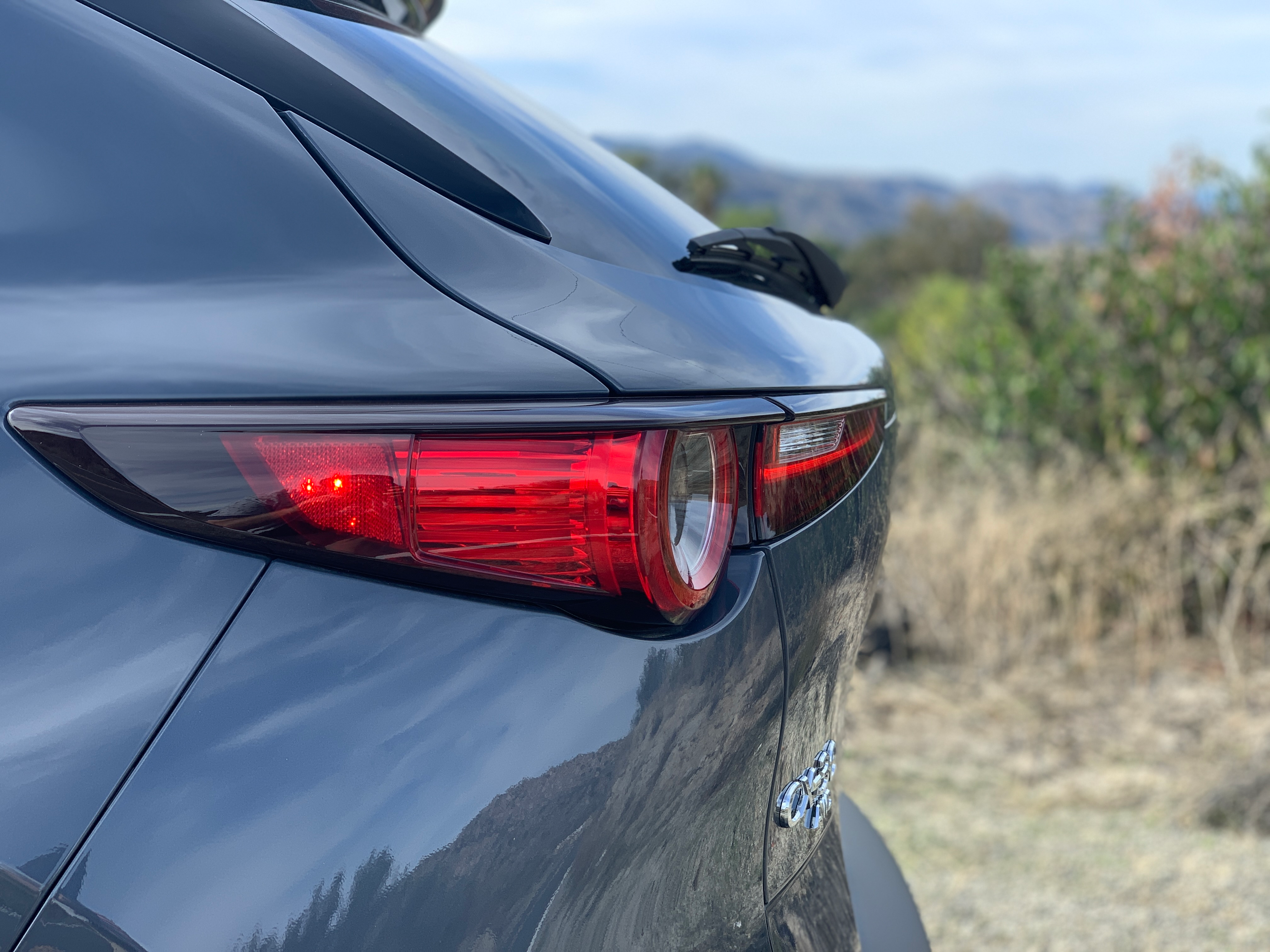 Visually the CX-30 sort of falls apart in the profile view where the thick plastic cladding and too-empty wheel wells make the optional 18s look entirely too small for the car. I can't imagine what the standard 16s look like! That said, it's still a far sight better looking than Toyota's C-HR or Honda's HR-V.