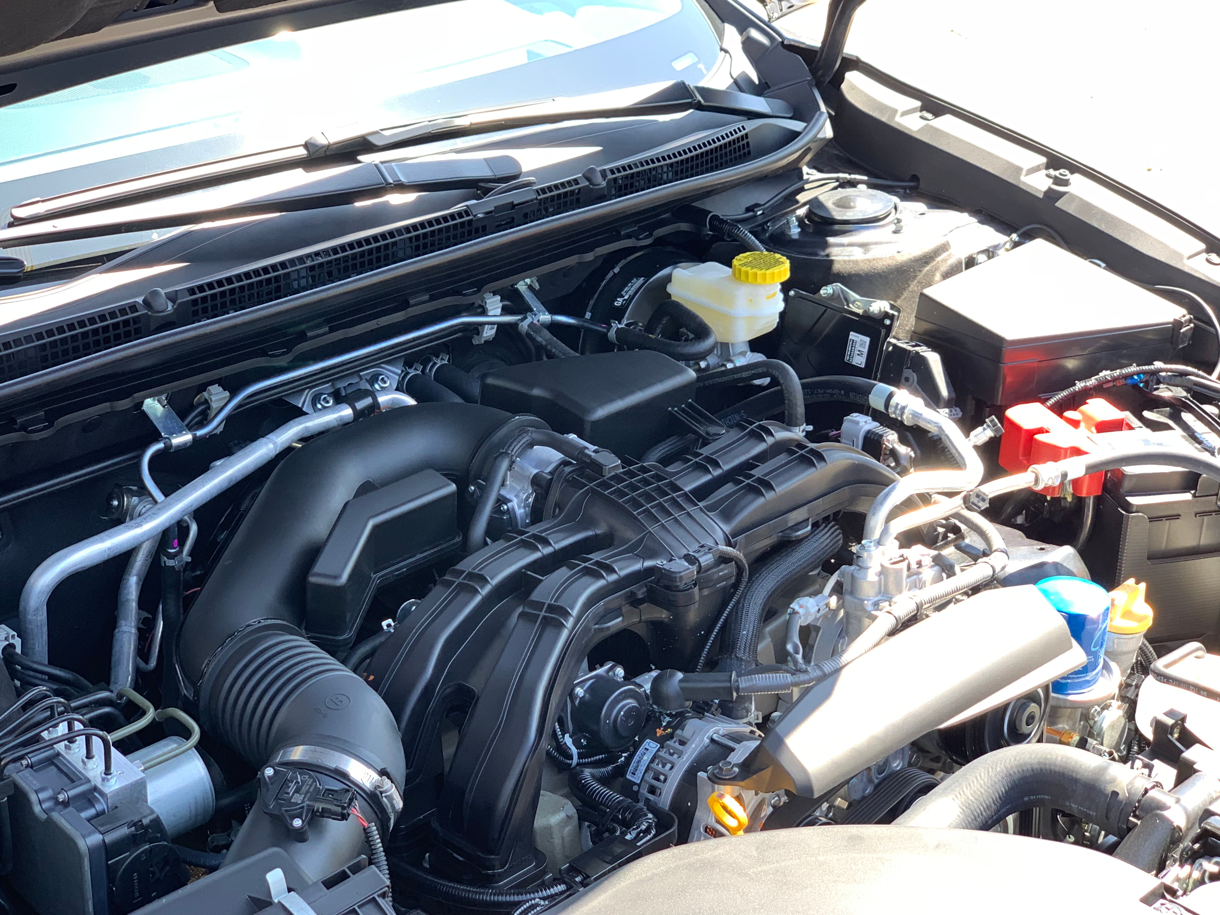 The turbocharged cars weigh about 250 pounds more than the non-turbo version does, and according to the Subaru engineers on hand, the only thing changed to compensate for that is a slightly stiffer spring rate. Noise, vibration and harshness is also improved, as the cars with boost feature acoustic damping glass fitted to both front side windows.