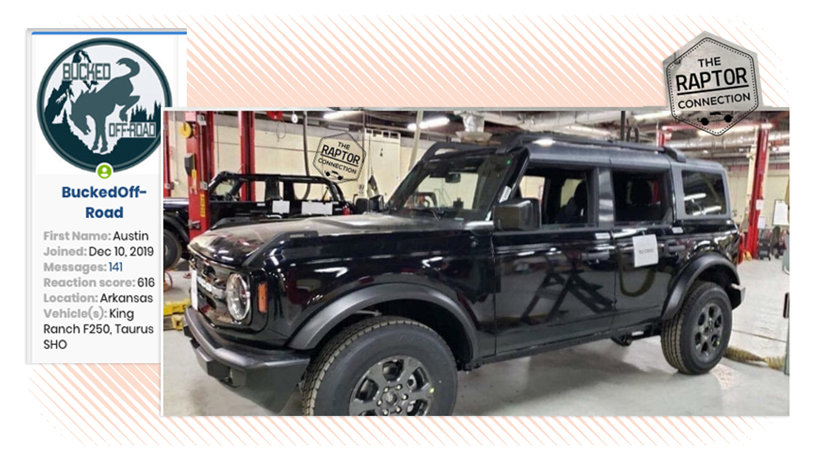 Once again, the administrators at Bronco6G.com sent us a thread on their forum featuring a couple of casual photographs watermarked by another source (this time The Raptor Connection) and posted by one of their users. Here's a screenshot: