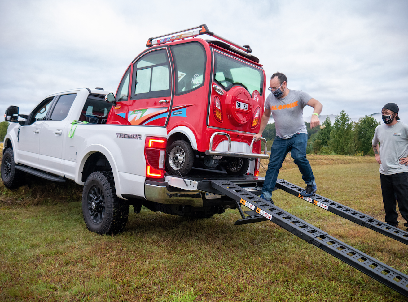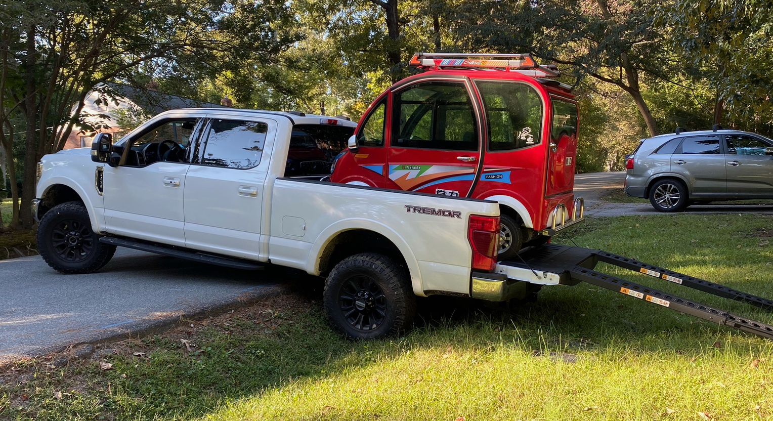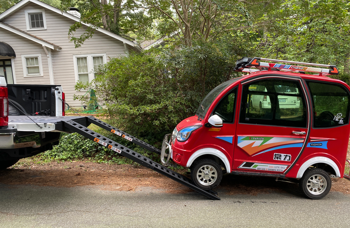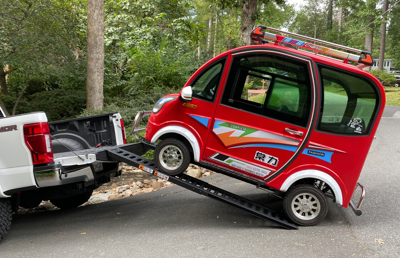 You might recall that earlier this week I wrote about my life-affirming adventure of taking the cheapest EV in the world to the racetrack. You also may recall that the cheapest EV in the world, the Changli, can only go about 28 miles per charge and tops out at under 25 MPH. This means to get to the track within a normal human lifespan, I needed to transport the 800-or-so pound Changli in some other vehicle. Luckily, Ford loaned me that other vehicle, an F-250, complete with a ramp kit that made Changli-hauling a snap.