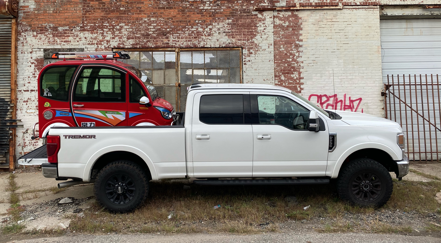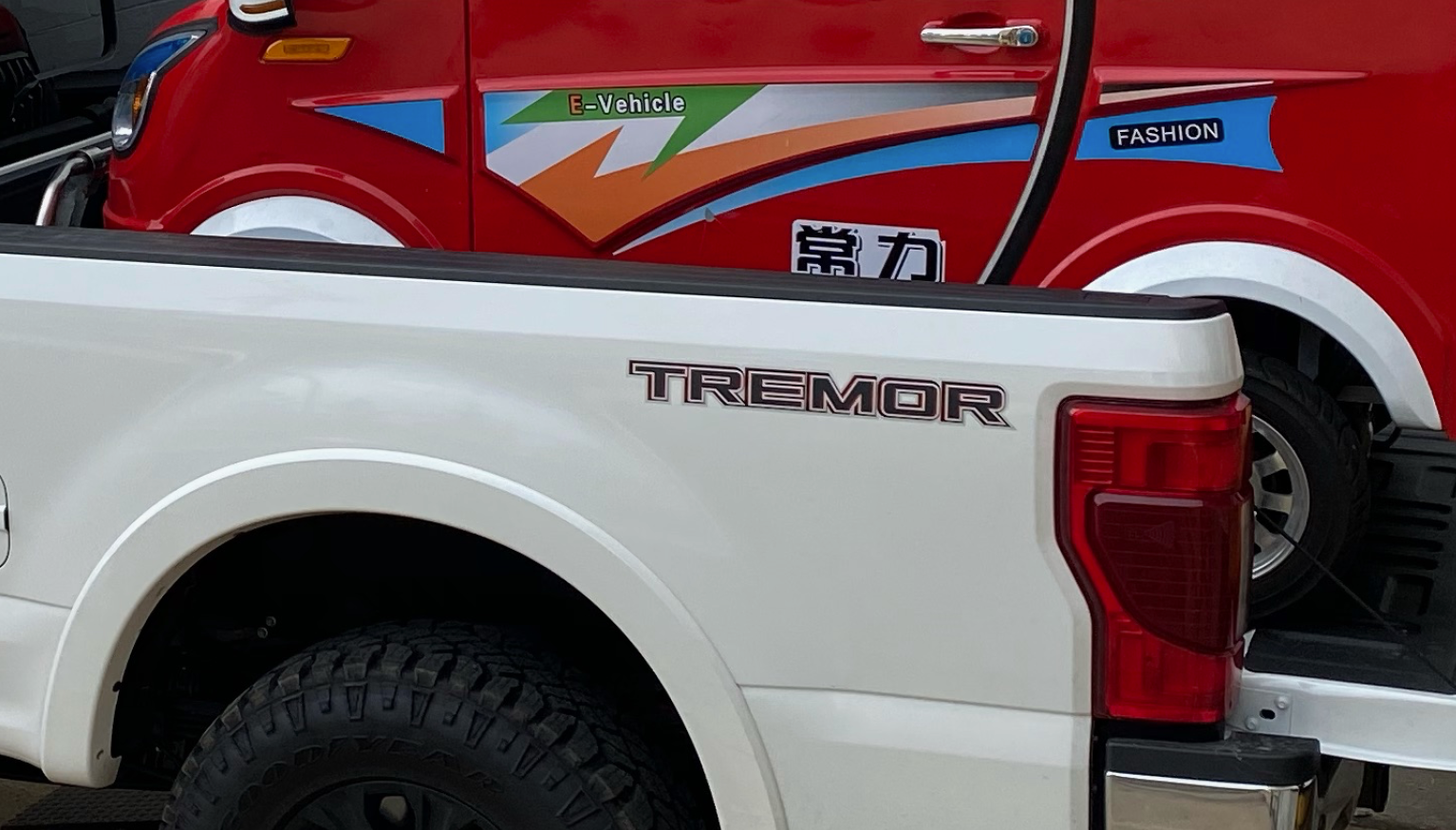 Oh, one actual disadvantage to having the Tremor package is that it's only available with the 6.75-foot bed, which meant that the Changli's butt hung out the back, not allowing the tailgate to close.