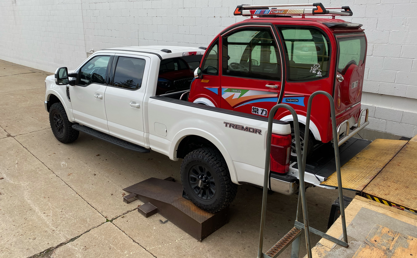 With the help of a pair of small ramps for the rear wheels, the F-250 was able to back right up to the loading dock, letting the tailgate meld seamlessly with that ramp, forming a perfect little Changli bridge. This was by far the easiest loading and unloading of the car the whole trip.