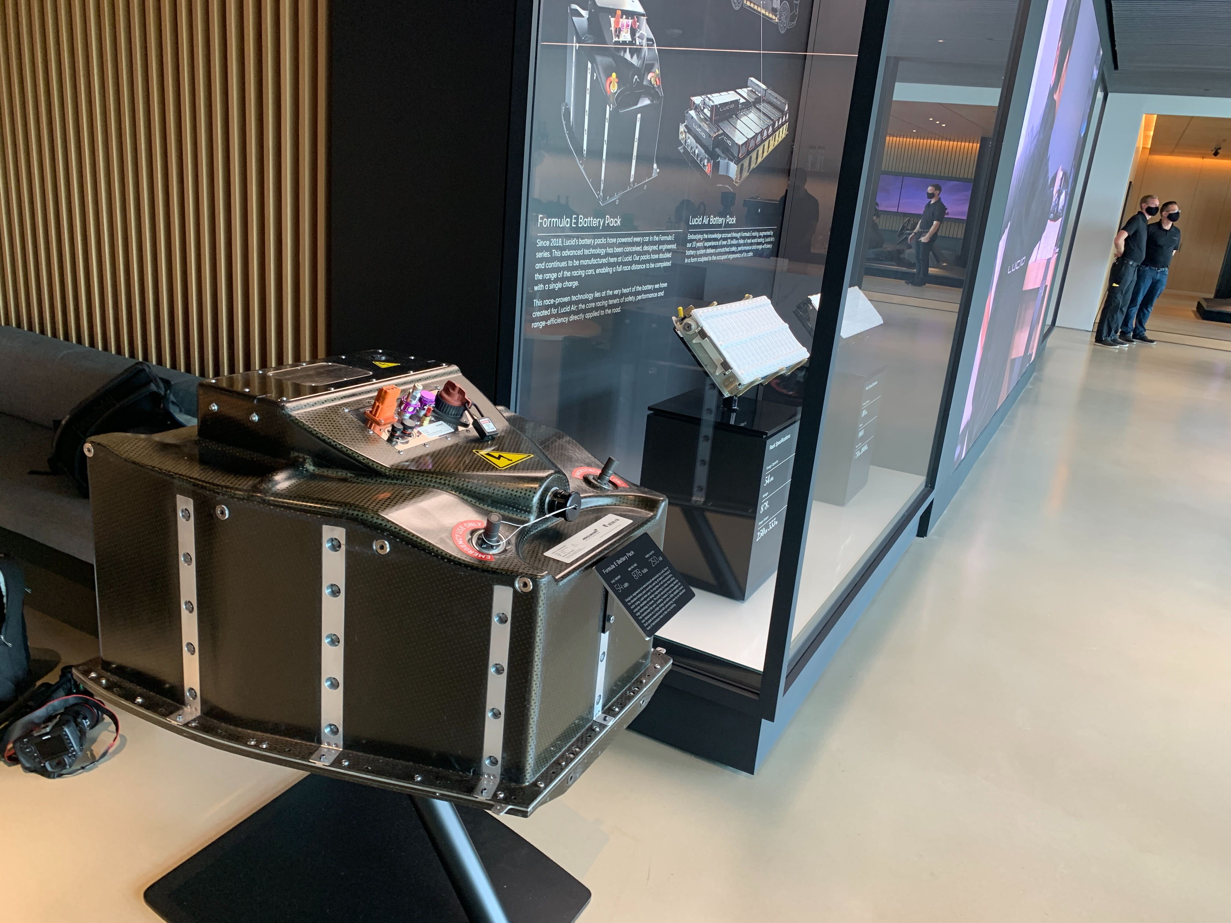 Next door to the Lucid battery production room is home to Atieva, Lucid's subsidiary company which has built all of the battery stacks for Formula E under contract with McLaren Technologies since the Gen 2 car was introduced in season 5 (late in 2018). The contract stipulated that the batteries couldn't have a road car manufacturer's name on them, because Porsche, Mercedes, BMW, Audi, etc. wouldn't be too pleased if it were widely known that their race cars were powered by Lucid.