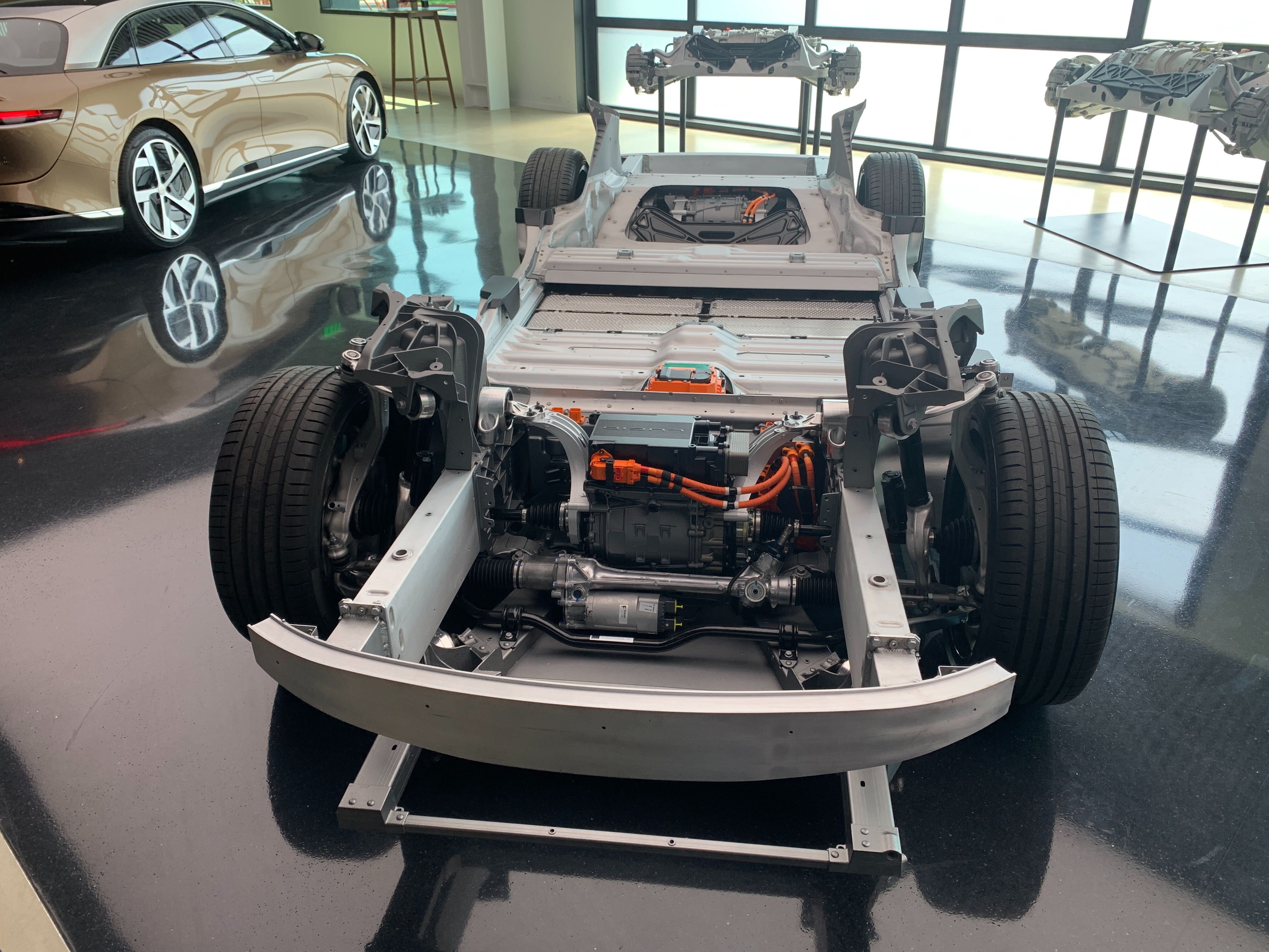 To the right of the prototype development stations is the work processes development station. This is a mock production line where the engineers are trying to figure out how best to line up the assembly process when this car goes into production later this year at Lucid's new facility in Casa Grande, Arizona.