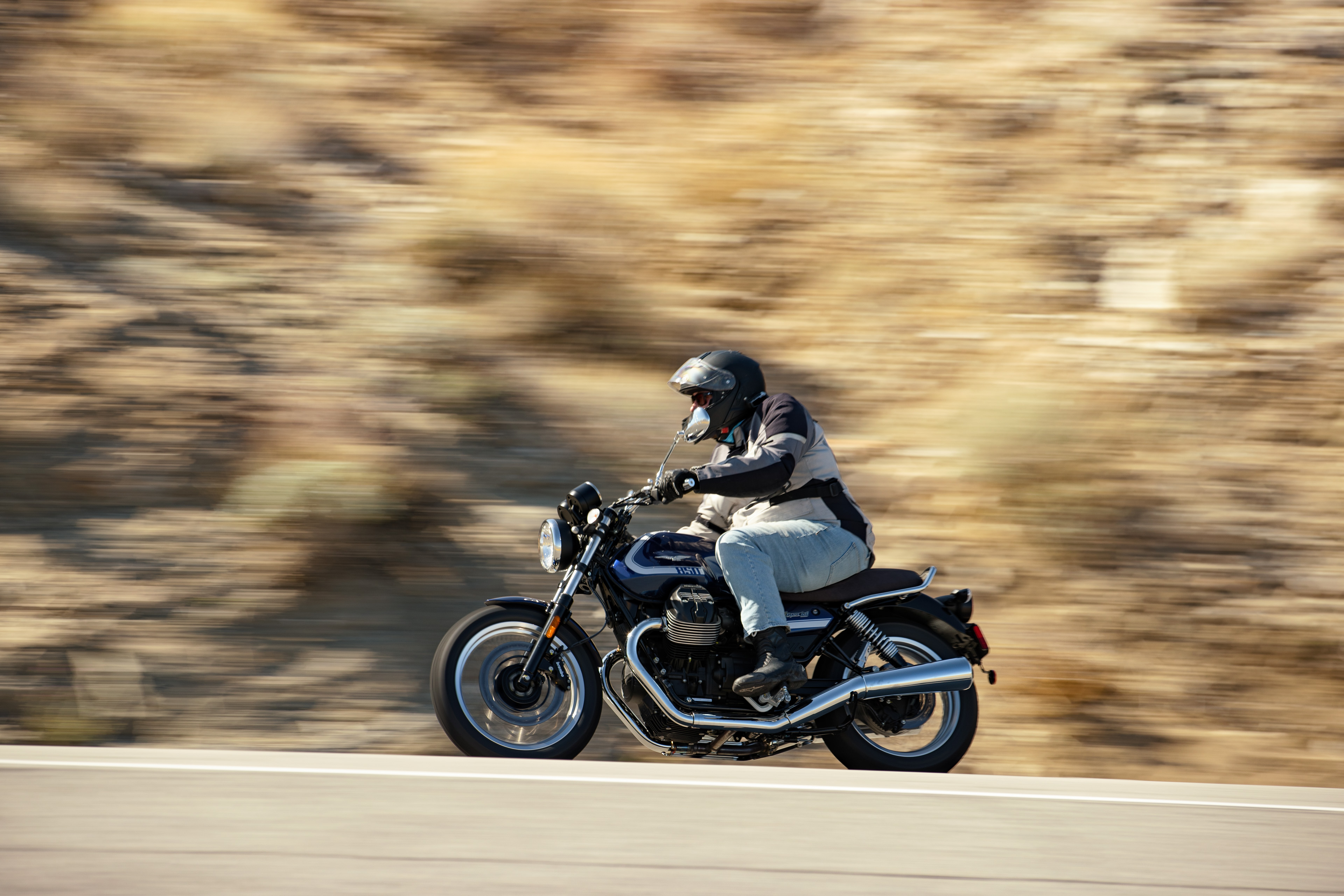 The 2021 V7 is a total re-do, from the tires to the mirrors. The new chassis, while still constructed of steel tubing, is 10 percent stiffer than the one it replaces, which should provide more stability at speed and a more predictable platform through the corners. There is also a stronger swingarm, a thicker driveshaft and a wider rear tire to deliver the grip a modern bike should have. New Kayaba shocks with longer travel, plus a thicker saddle and rubber-isolated foot pegs, contribute to improved rider comfort.