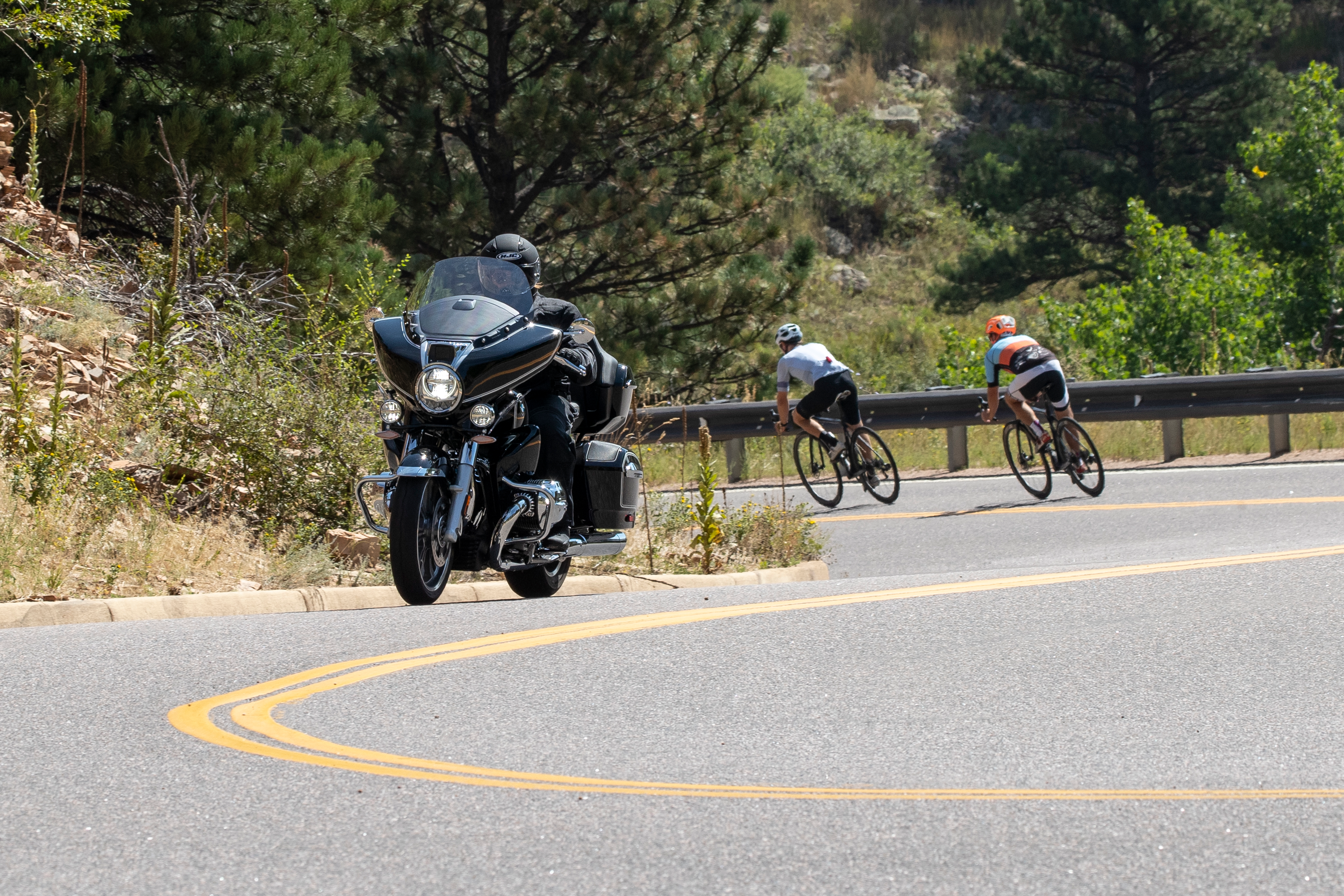 Standard, either bike comes with Dynamic Cruise Control. In this system, you set a speed and the motorcycle will maintain that speed, even while doing down a steep grade. It uses a mix of the bike's brakes and engine braking to keep you at the speed you set. Go for the optional Active Cruise Control and not only will the motorcycle maintain a set speed, but it'll actually keep distance and brake in traffic, too. Active Cruise Control uses a front-mounted radar to measure distance in conjunction with a preferred following distance set by the rider.
