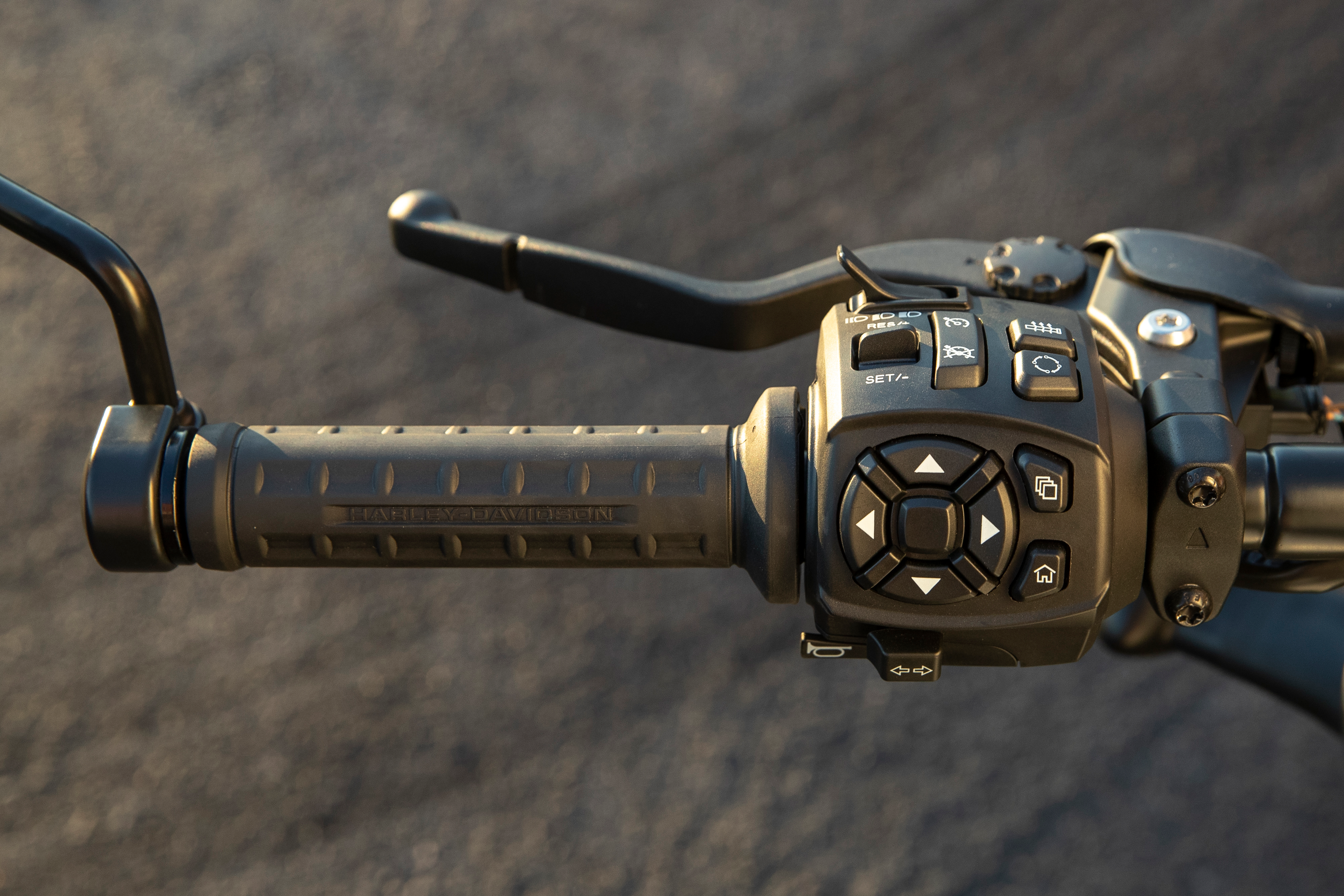 The controls are clearly marked and easy to use. This is the same cluster of buttons and switches found on the Pan America and because they don't sit up so high on the Sportster as they do on the high-bars of the ADV bike, the top buttons are much easier to read and push.