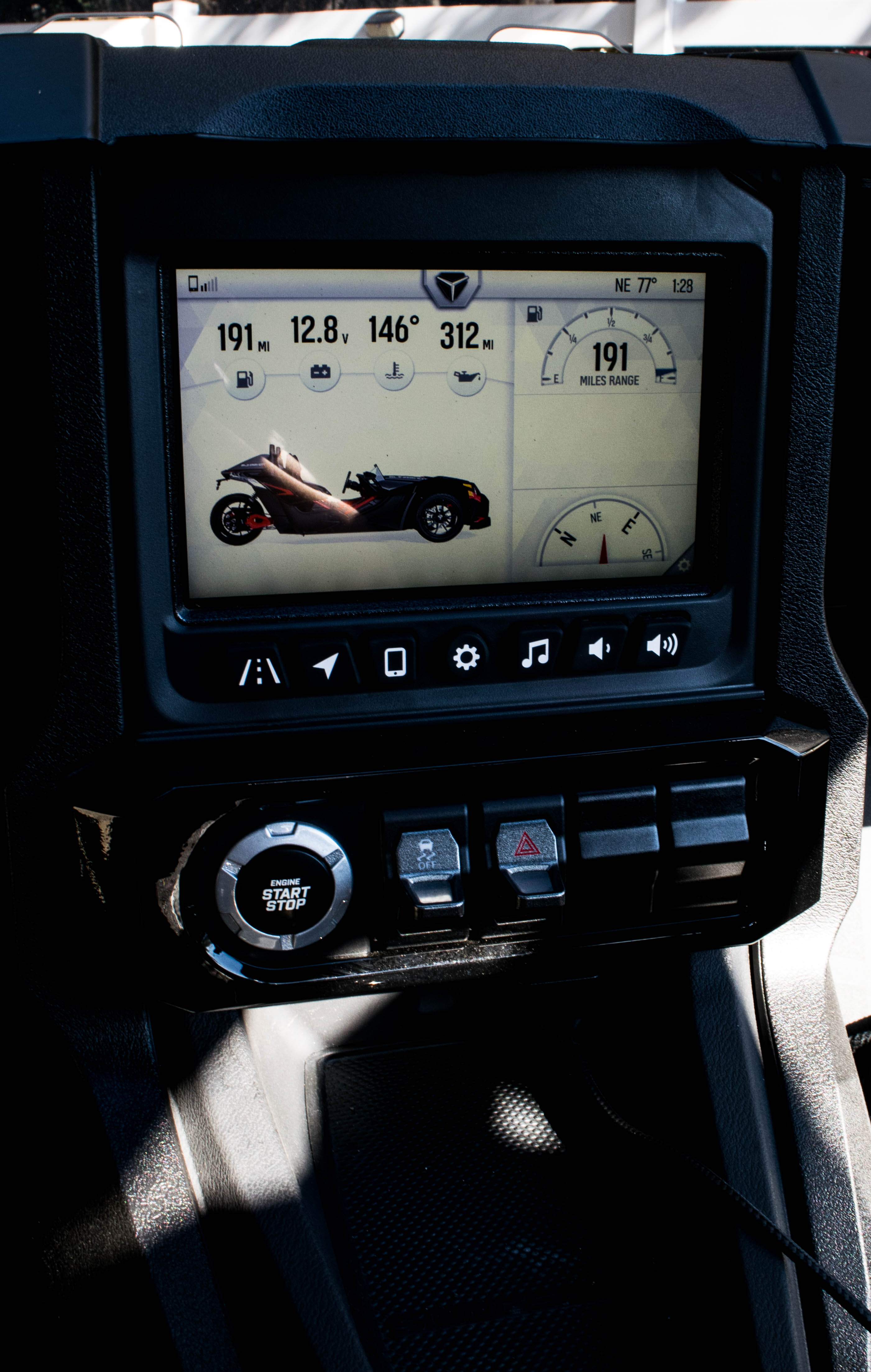 Slingshot SL: Add optional drive modes, a 100-watt audio system, a security package, backup camera, 7-inch infotainment screen with Bluetooth, USB phone connectivity, and a rear-view camera