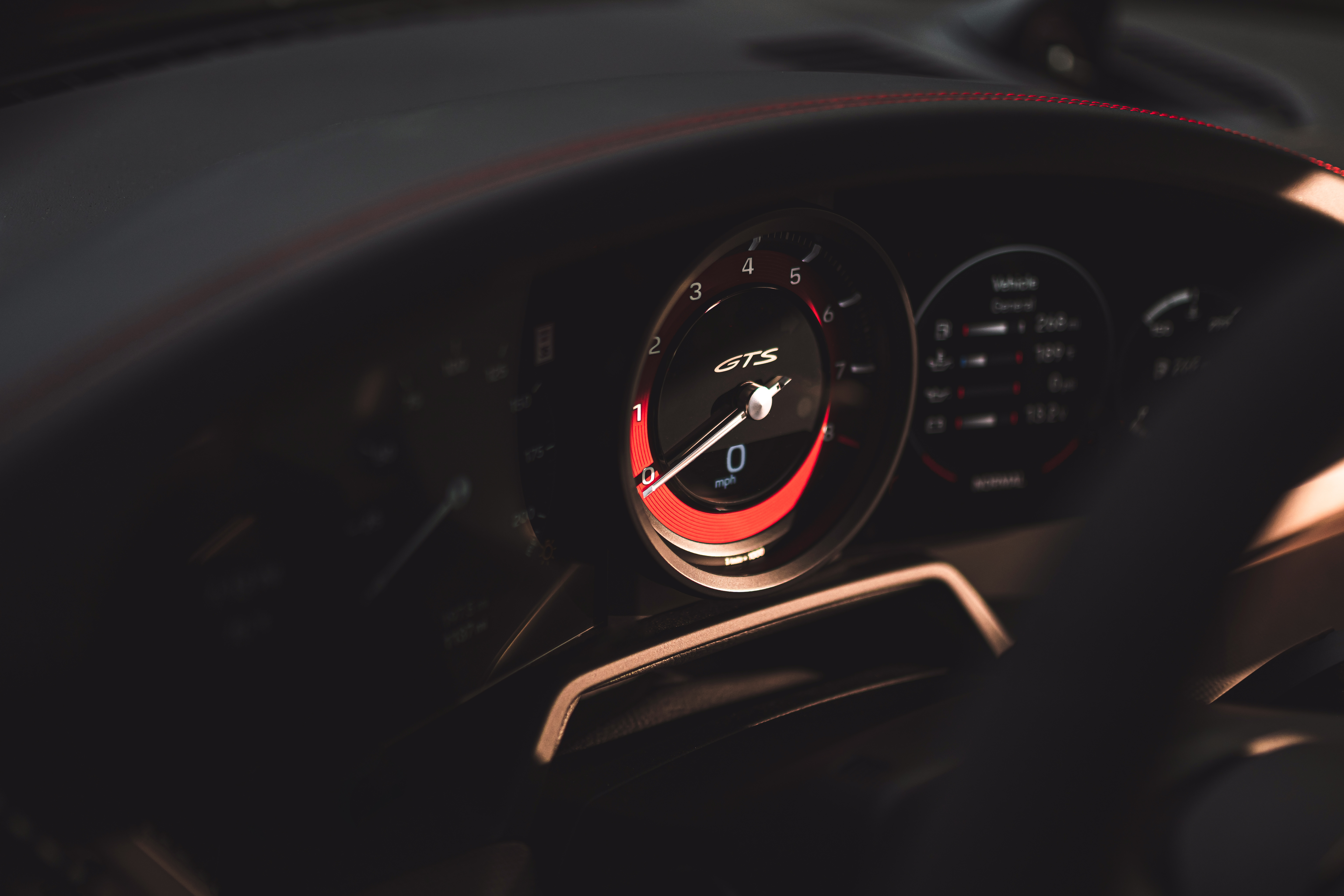 Once that has all been added on, Porsche differentiates the GTS from its S siblings with unique exterior and interior aesthetic accouterments. First, the Sport Design aero package is made standard, then the light housings, exhaust tips, and badging are blacked out. Inside you get seats, door handles, shifter, and steering wheel trimmed in faux suede, which Porsche calls Race-Tex. There's a special GTS Interior Package which decks out the inside of the car in either Carmine Red (the righteous choice) or Chalk (the boring choice).