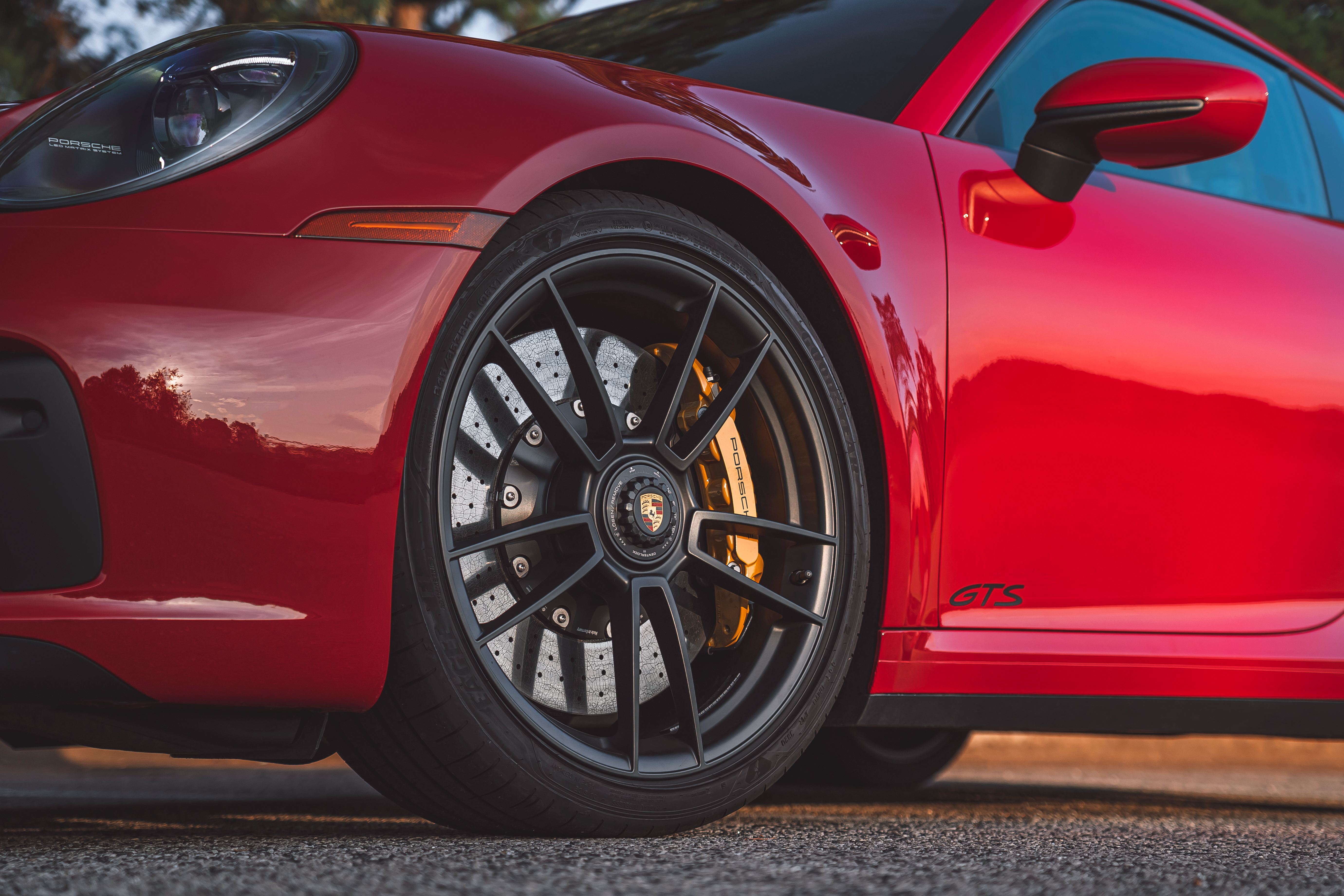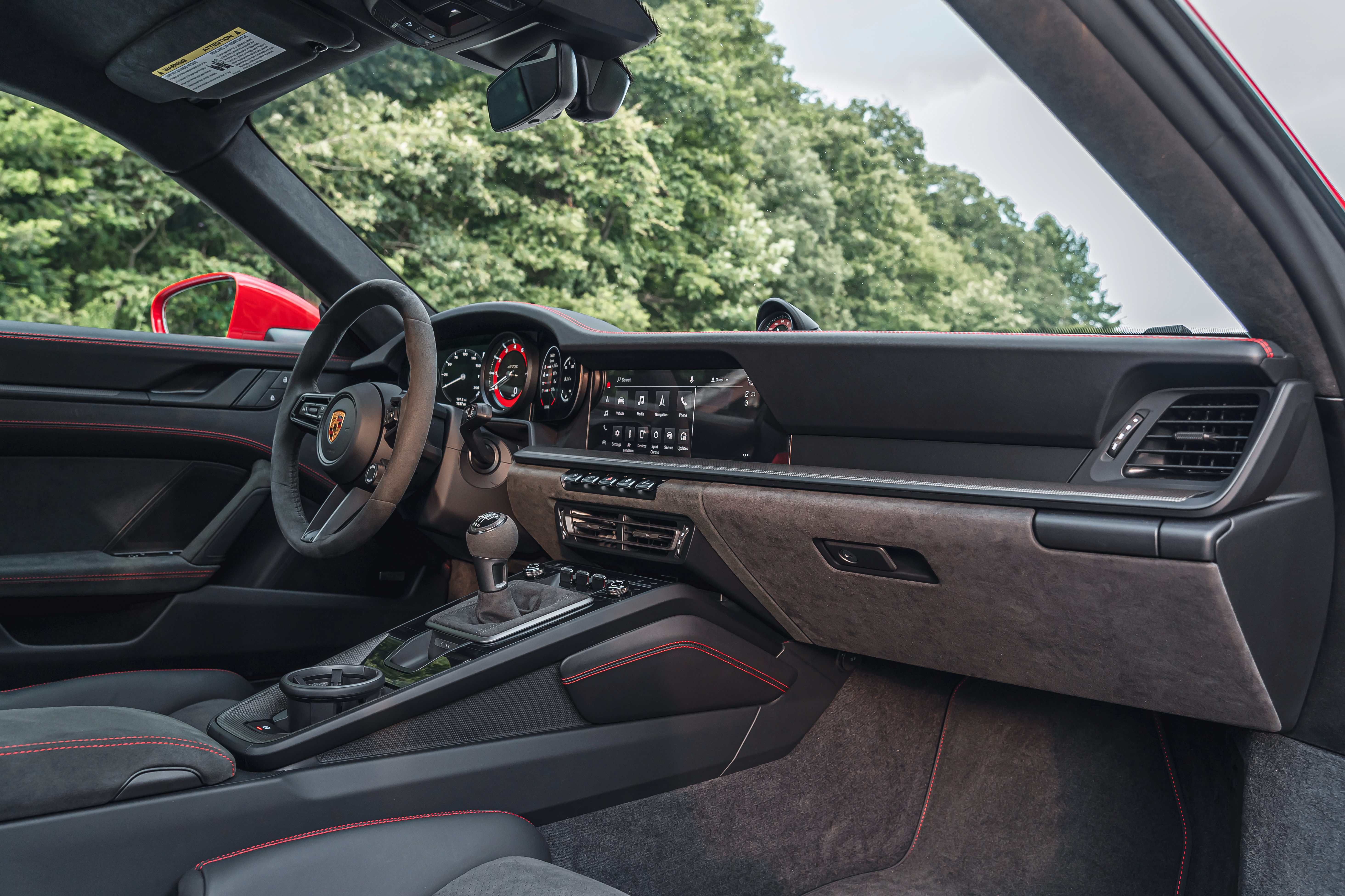 This particular example that I tested is a Carmine Red rear-wheel drive Carrera GTS coupe with the GT Interior Package, the Lightweight Package, a manual transmission, and carbon ceramic brakes. This is as focused and sporty as the 911 can get while still ostensibly being fit for daily driver status.