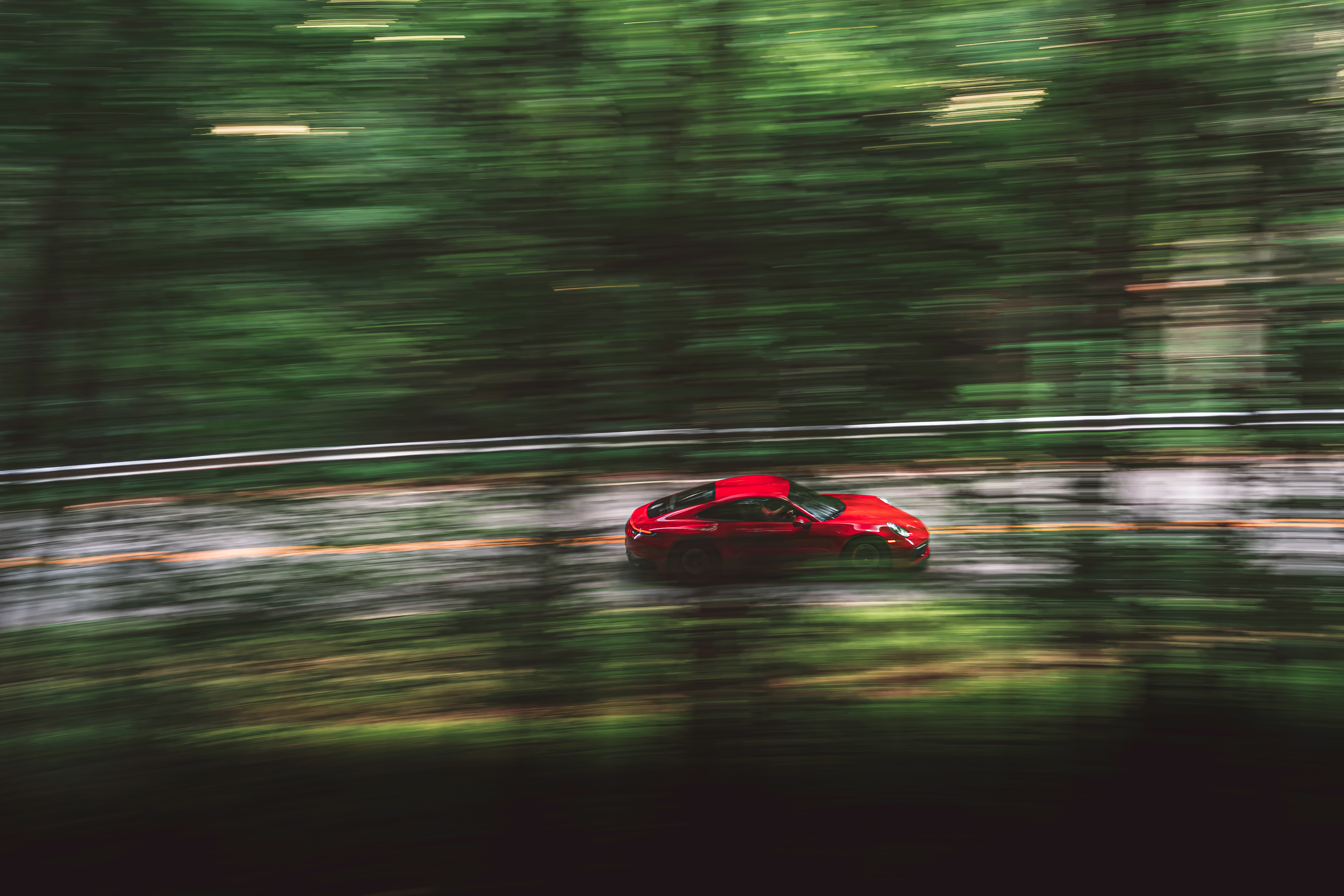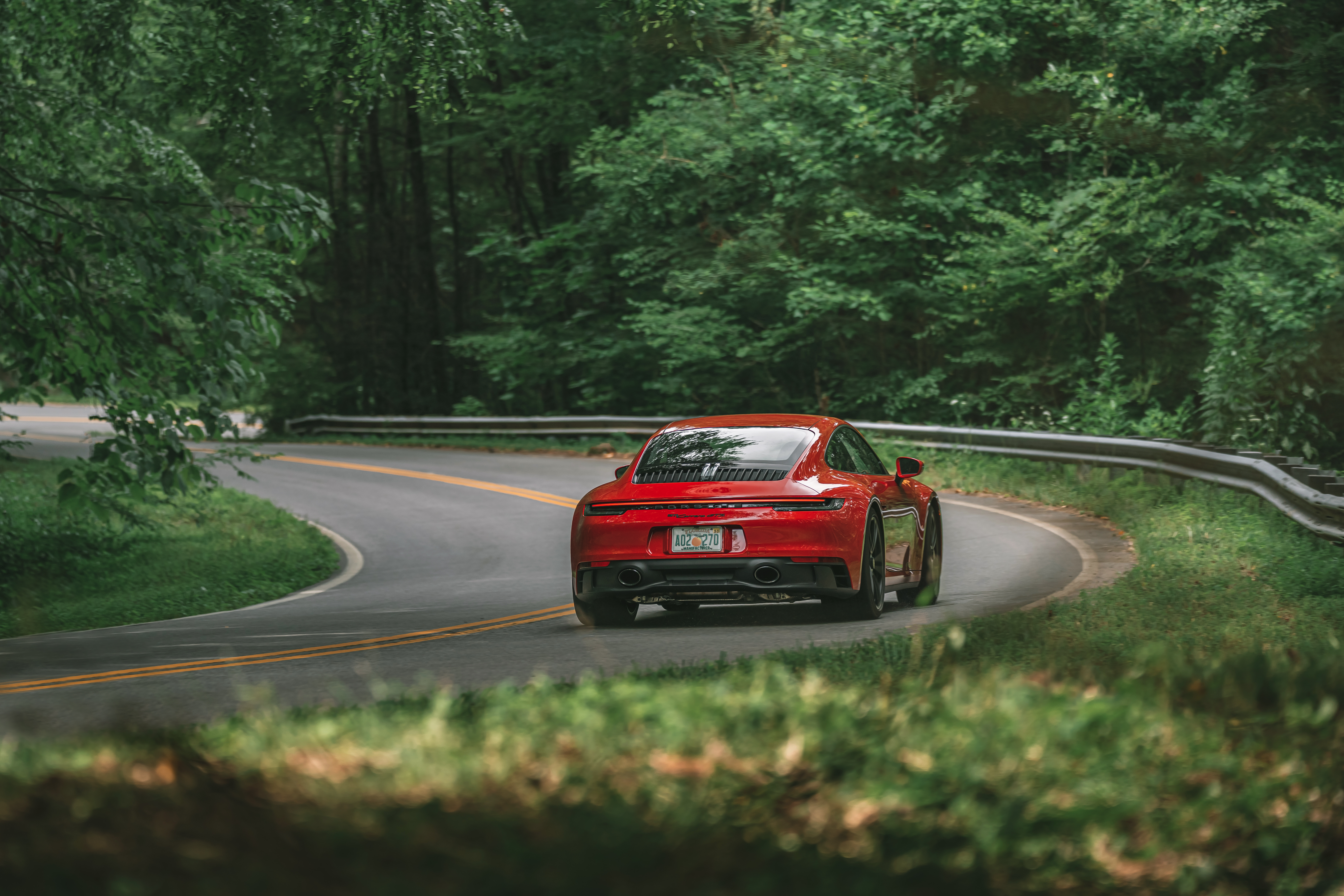 Once we got up into the mountains and the lateral G-forces increased, I found myself less worried about fitting into the seats and more focused on the task at hand. The 992-generation 911 is a really big car, but with rear steer, big sticky tires, and 475 damn horsepower, it manages to bend time and space around itself to feel much smaller than it is. It plays hop scotch on the delineation between sports car and grand tourer, but in this guise, on these roads, it plants itself firmly in the former camp.