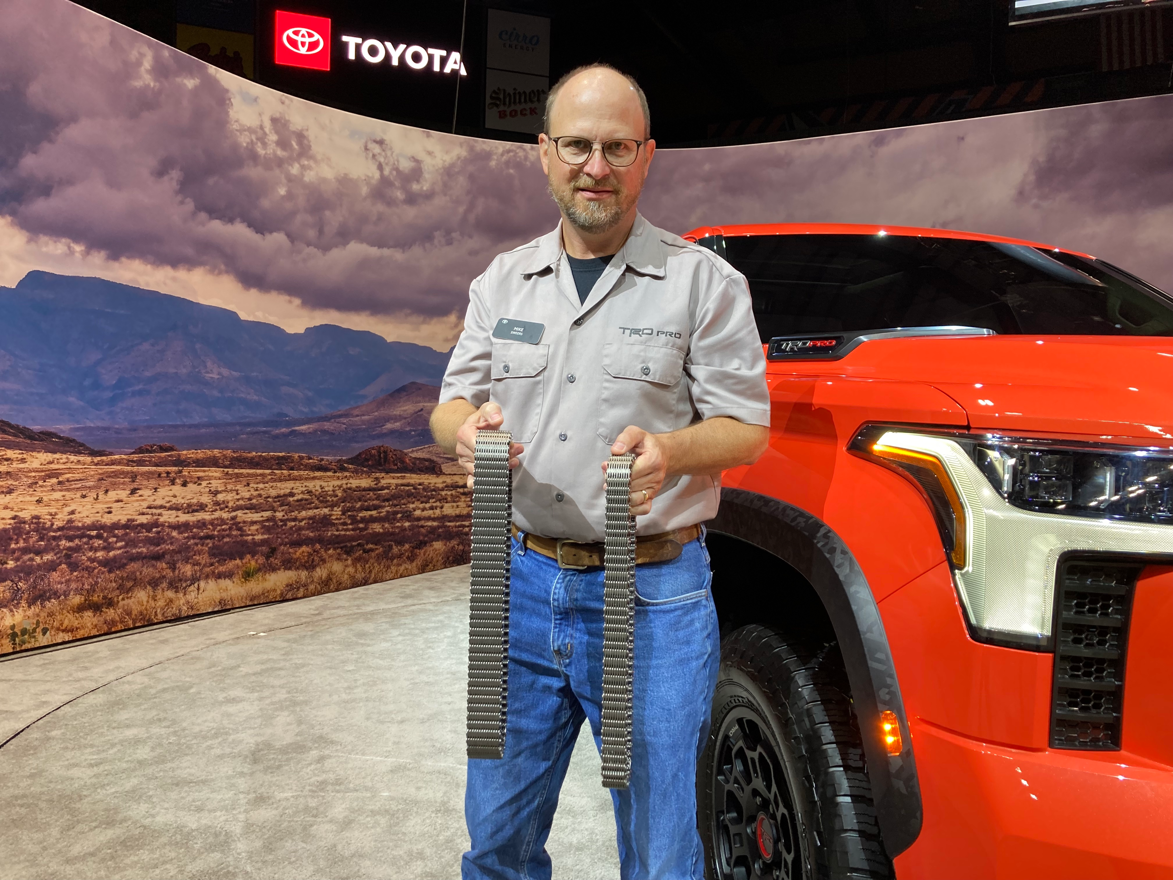 Another good example of Toyota making changes that add up to a (hopefully) reliable truck was illustrated by Sweers, who made a point of showing off the drive chain in the Tundra's transfer case. The dude is a truck nerd, for sure, and I say that as a compliment.