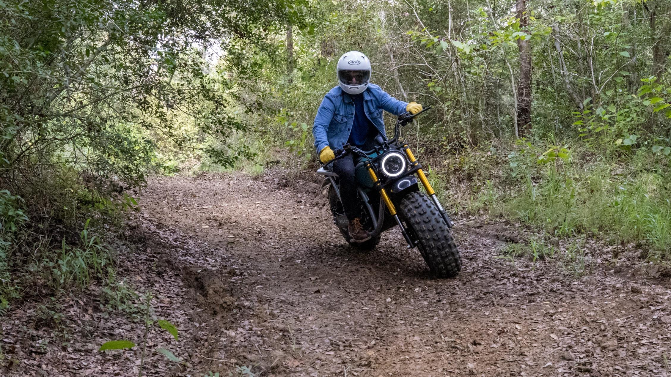 It took me a second to get used to that, but the Grunt is so friendly that adjusting takes just a short lap. The bike's saddle is narrow but comfortable, and it's 32 inches tall, which is fine even for a short rider like me. The ease of use is also due to the Grunt's 330-pound weight. Volcon claims the mass is low-slung, and that feels right when you ride the Grunt, which feels flickable but planted.