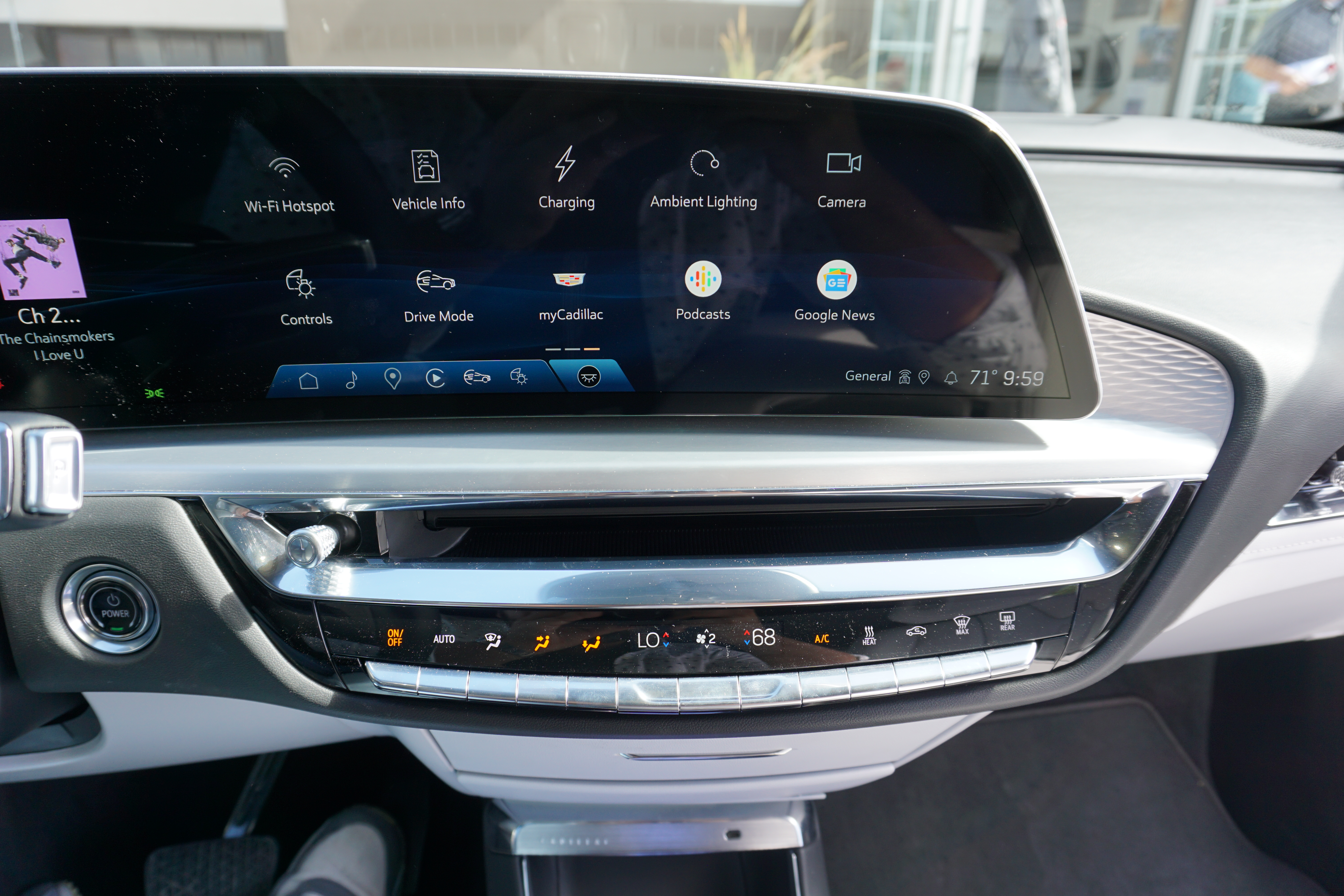 Unlike the Escalade, which has three screen panels stitched together, the Lyriq's ultra-wide setup is one continuous display from end to end. It's mighty impressive, controlled either by touch or via the rotary dial in the center console. It's quick to respond and has very little lag switching between menus. Apple CarPlay works well and fills the whole screen. The Cadillac also offers Google Assistant, which can do a number of things, including being able to adjust the climate control on the fly. It's similar to systems found in BMW and Mercedes, but this time big-Google is behind it.
