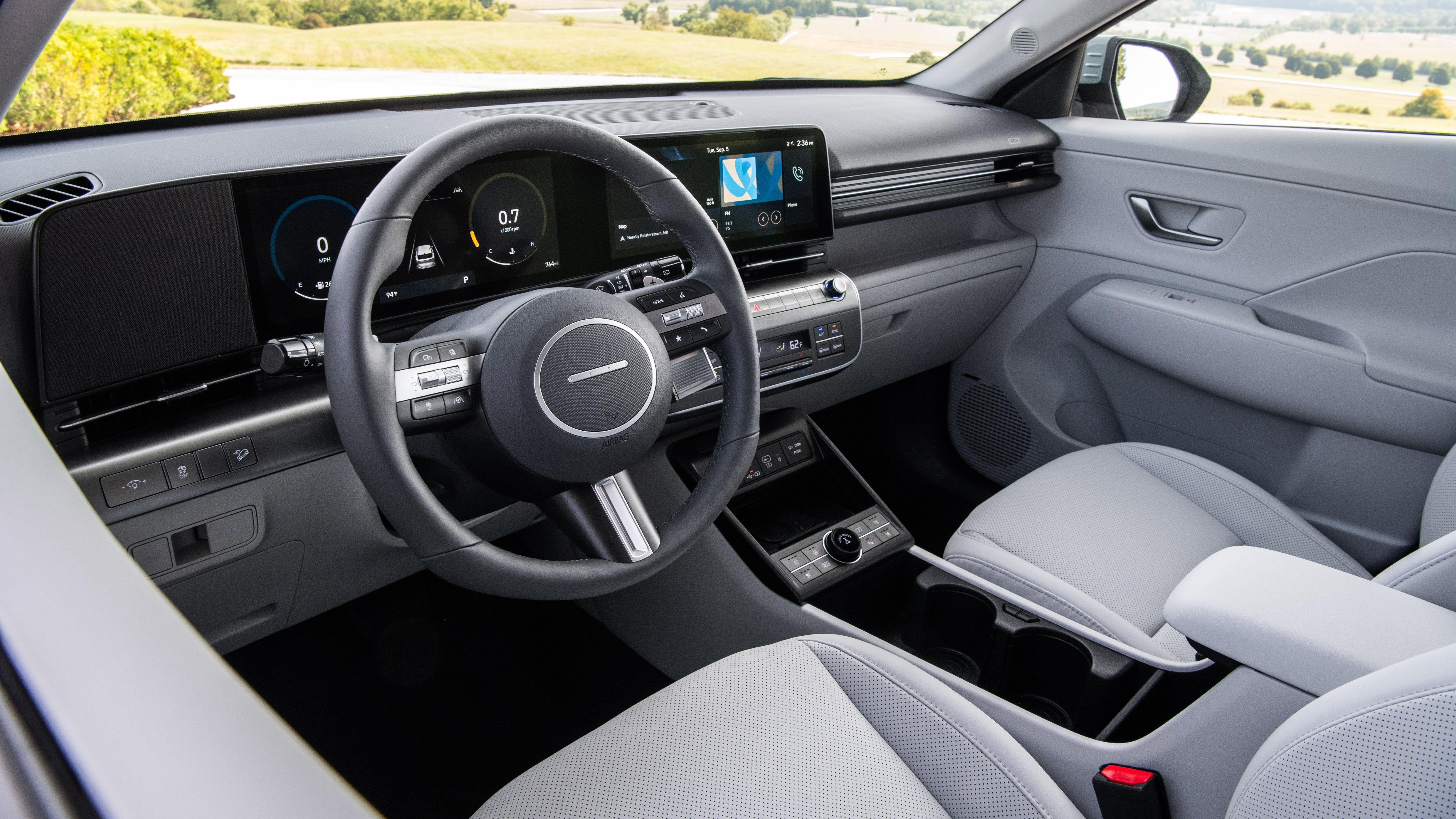 Hyundai focused on function over form when designing the new Kona's interior. The dashboard features two 12.3 integrated displays, mimicking the minimalist look of the automaker's other models. The Kona also features physical buttons for nearly every often-used control, including whether its USB-C port is used for solely charging or also as a data connection.