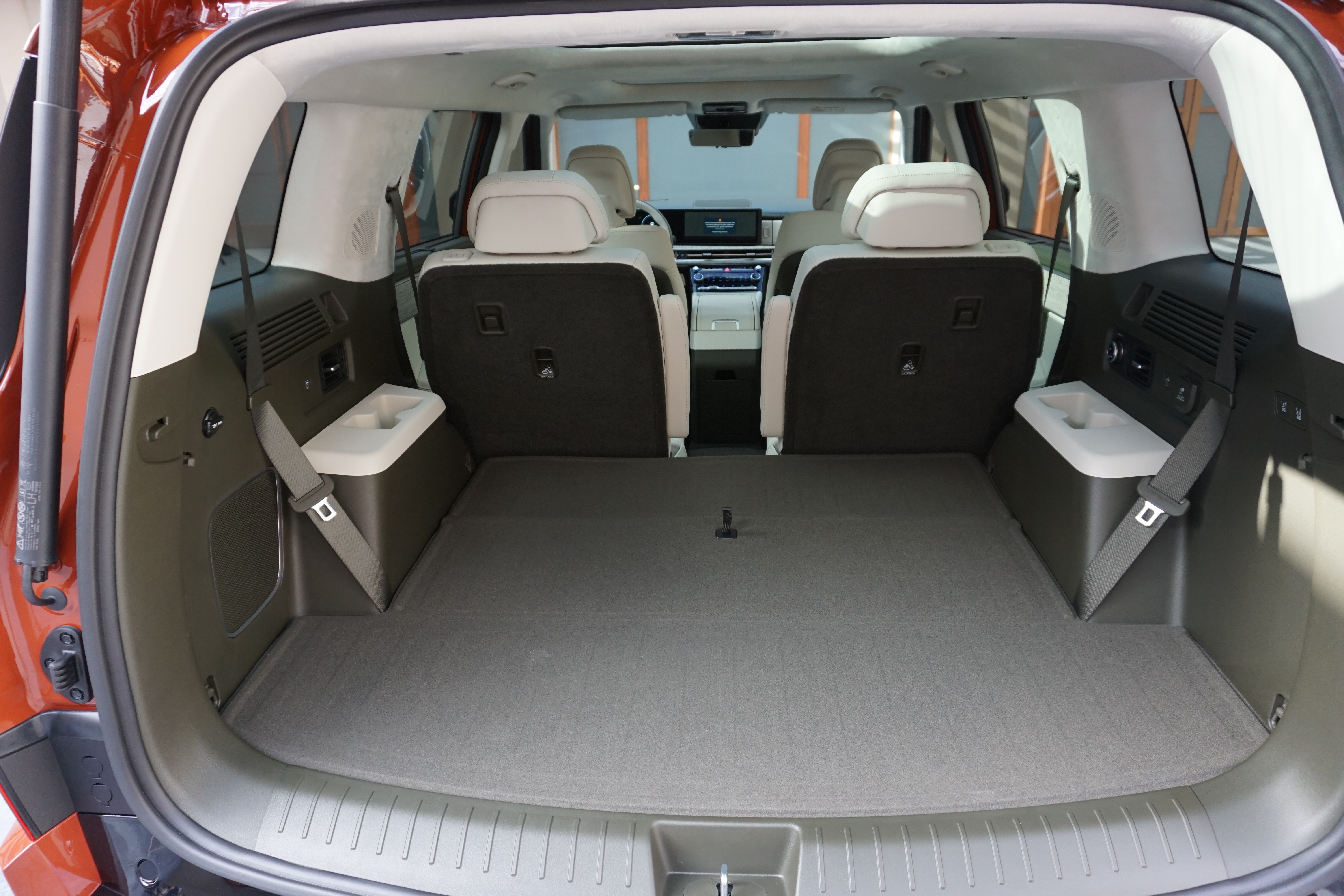 Hyundai shares that it now offers class-leading interior space thanks to Santa Fe's longer wheelbase. I'll admit, I forgot my tape measure in New York so I don't have those numbers, but I can tell you this: it certainly feels roomy inside. With the second and third rows folded (completely flat, I may add) the Santa Fe is downright cavernous in size. If you can't get all your shit in this car, then you need less shit.