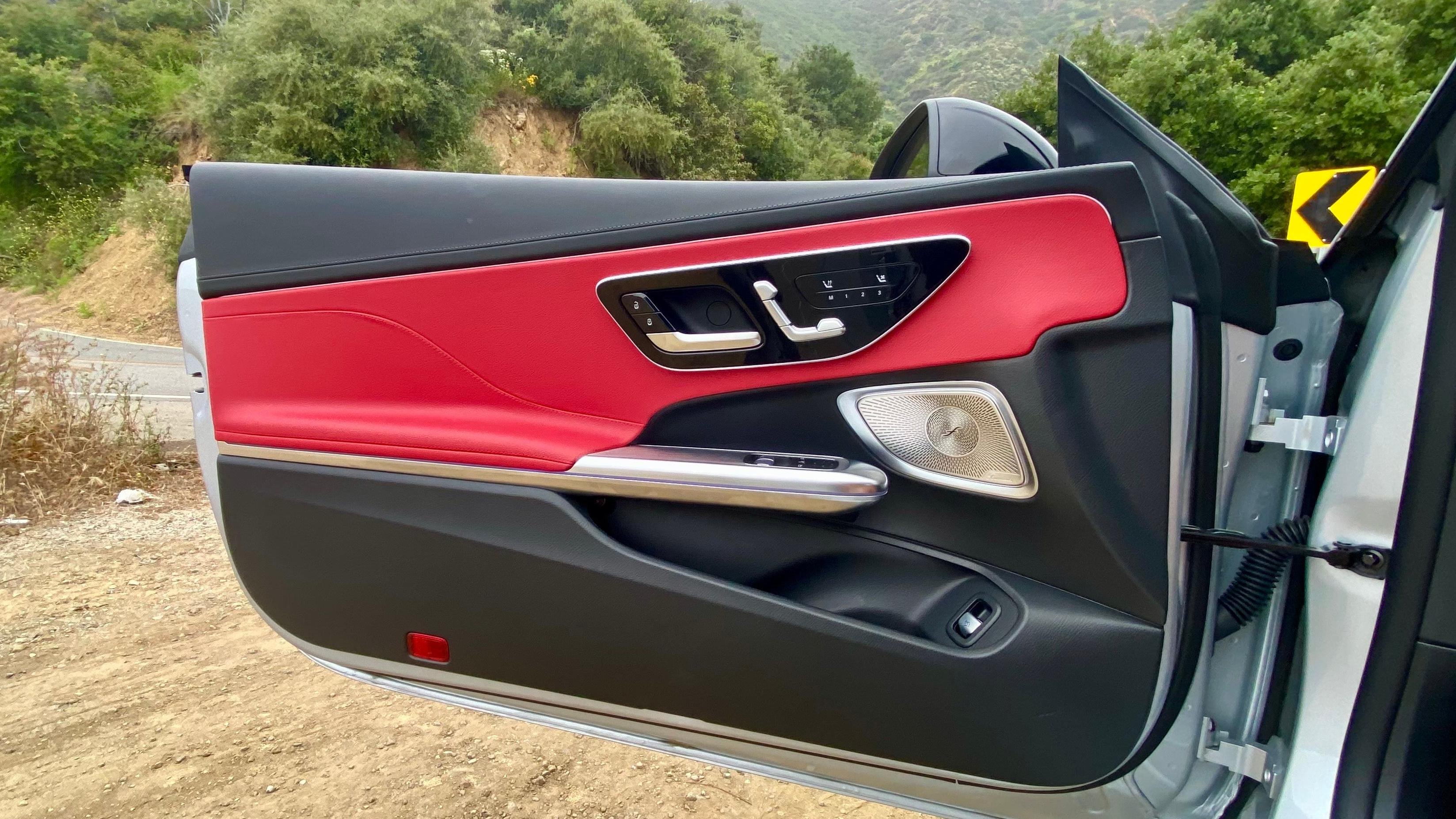 As a cruiser, the CLE is more successful. The seats are frustratingly comfortable; I don't have a bad thing to say about them aside from their $3,020 total price including the cost of the upgraded material, multi-adjustability, massage and ventilation. Lovely thrones, these. The CLE's ride on standard passive dampers is composed most of the time, but over broken pavement, it feels busy, like the wheels are doing a lot of bouncing and scrambling with the occasional sharp bump. The body structure felt solid, and the standard sunroof was a nice touch despite eating into the already minimal headroom.