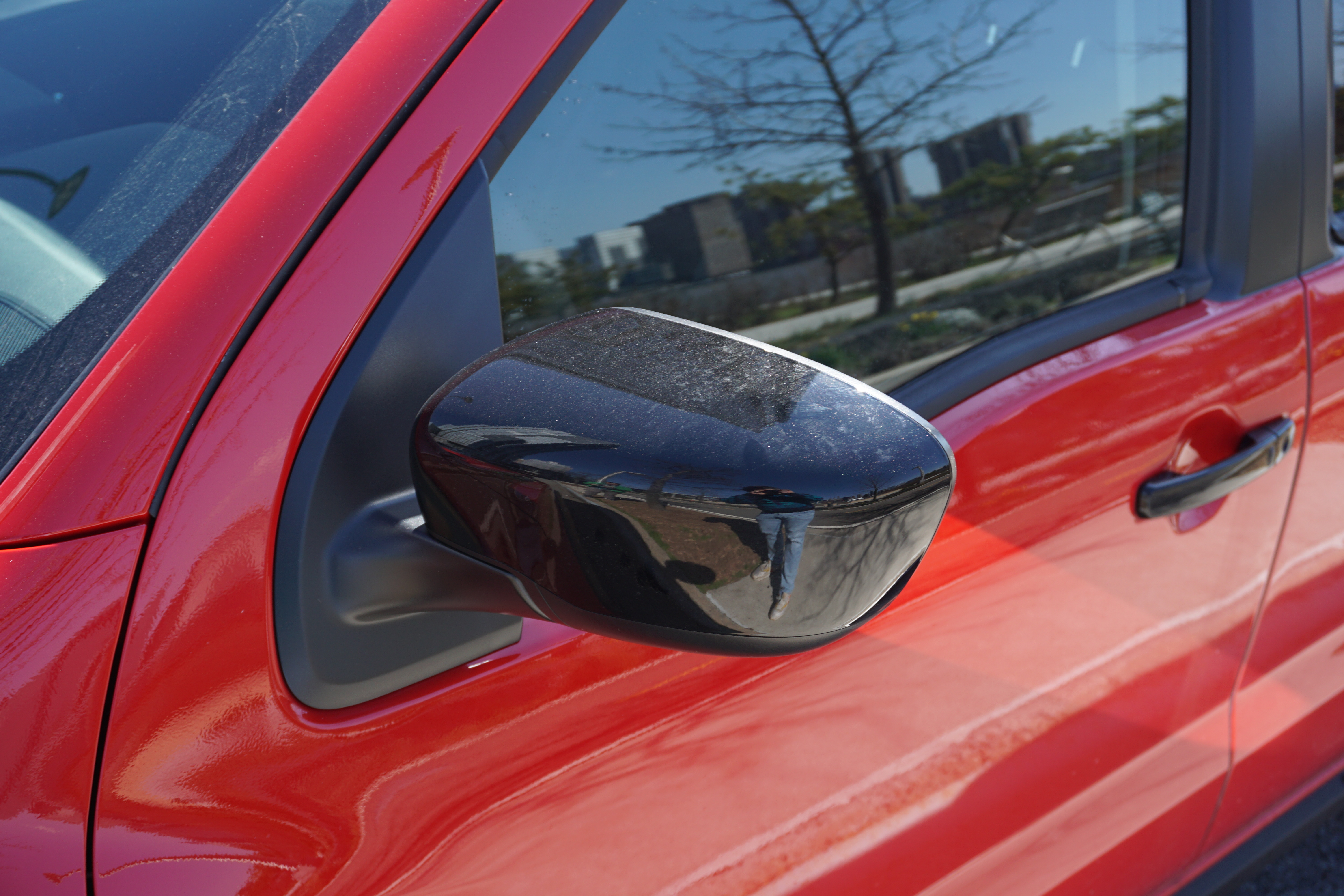 To make the Frontier Hardbody more faithful to the original, Nissan gave the truck black side mirror caps and black door handles. On the original truck, they were a cheap, flat plastic. Here's they're glossy, baby.