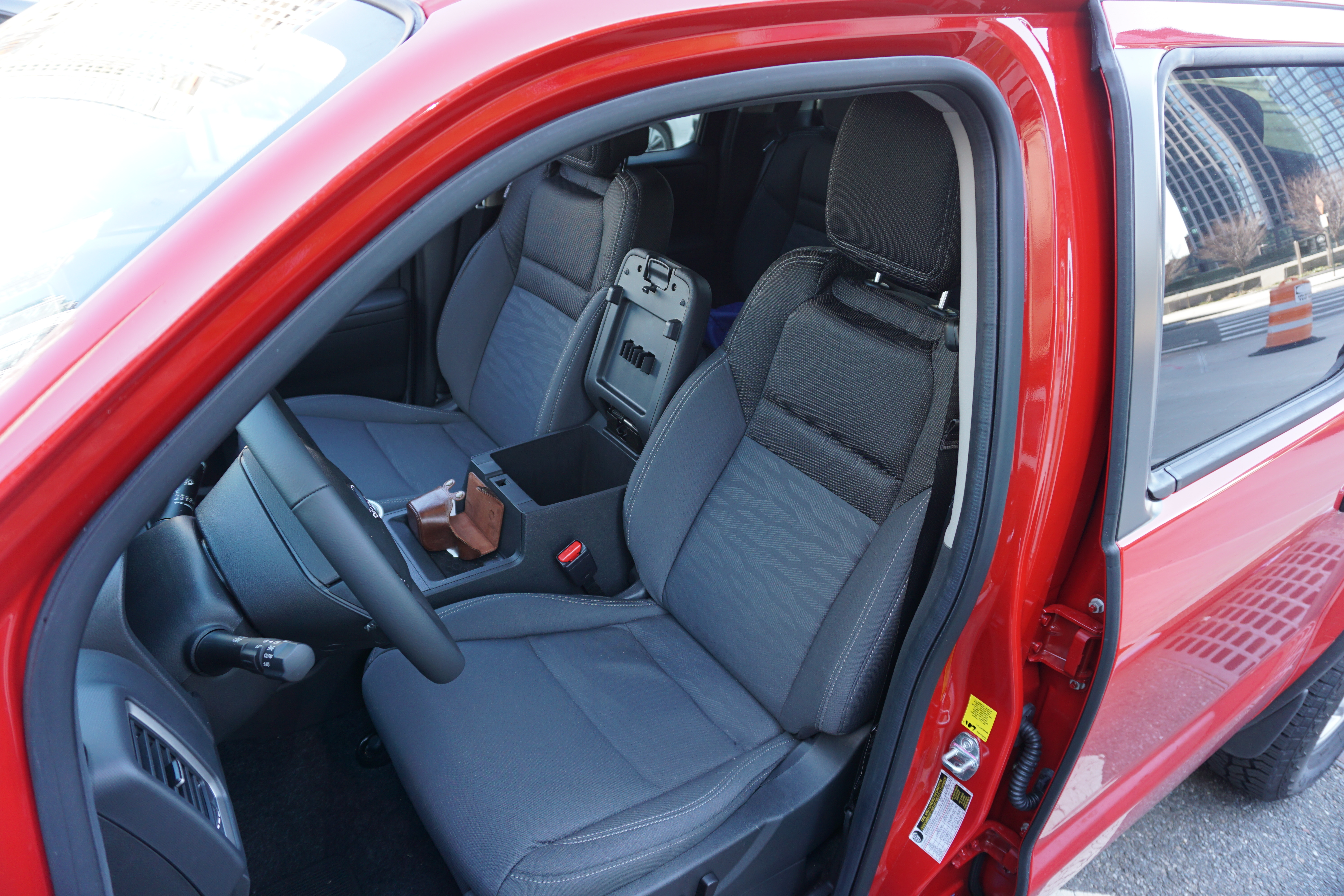 The Frontier Hardbody comes with fabric seats. Leather is available on cheaper trims, but Nissan wanted to keep the interior authentic with the fabric. Overall, the seats are fairly good, though there is not much in the way of lumbar support. At least the driver's is fully electric.