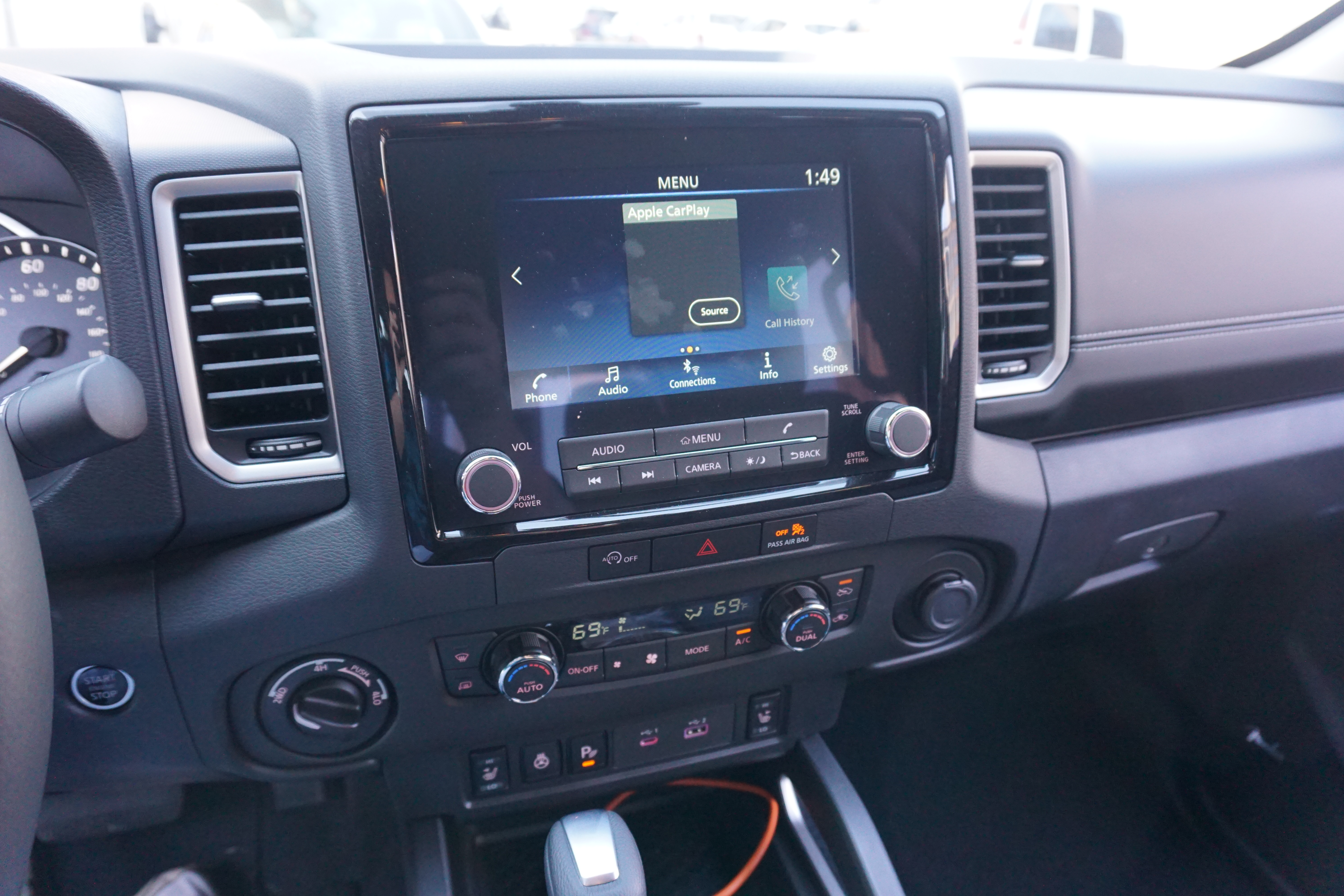 The inside of the Frontier Hardbody is also a throwback, but not exactly on purpose. Nissan built a very simple truck when it created the new Frontier. You won't find the latest tech and gadgetry in here. You've got an analog gauge cluster, a small infotainment screen (that does run CarPlay and Android Auto through USC), a regular PRND automatic shifter and hard buttons for all your HVAC controls. It even has a foot-mounted parking brake. At least it has heated seats and a heated steering wheel!