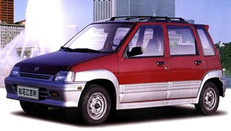 Here, for instance is a car the sold in 1997 as a knockoff of a car sold in 1991 based off a car sold in 1988. That is, this Hafei Baili is a knockoff of the Daihatsu Tico, a van version of the Suzuki Alto kei car. From CarNewsChina:
